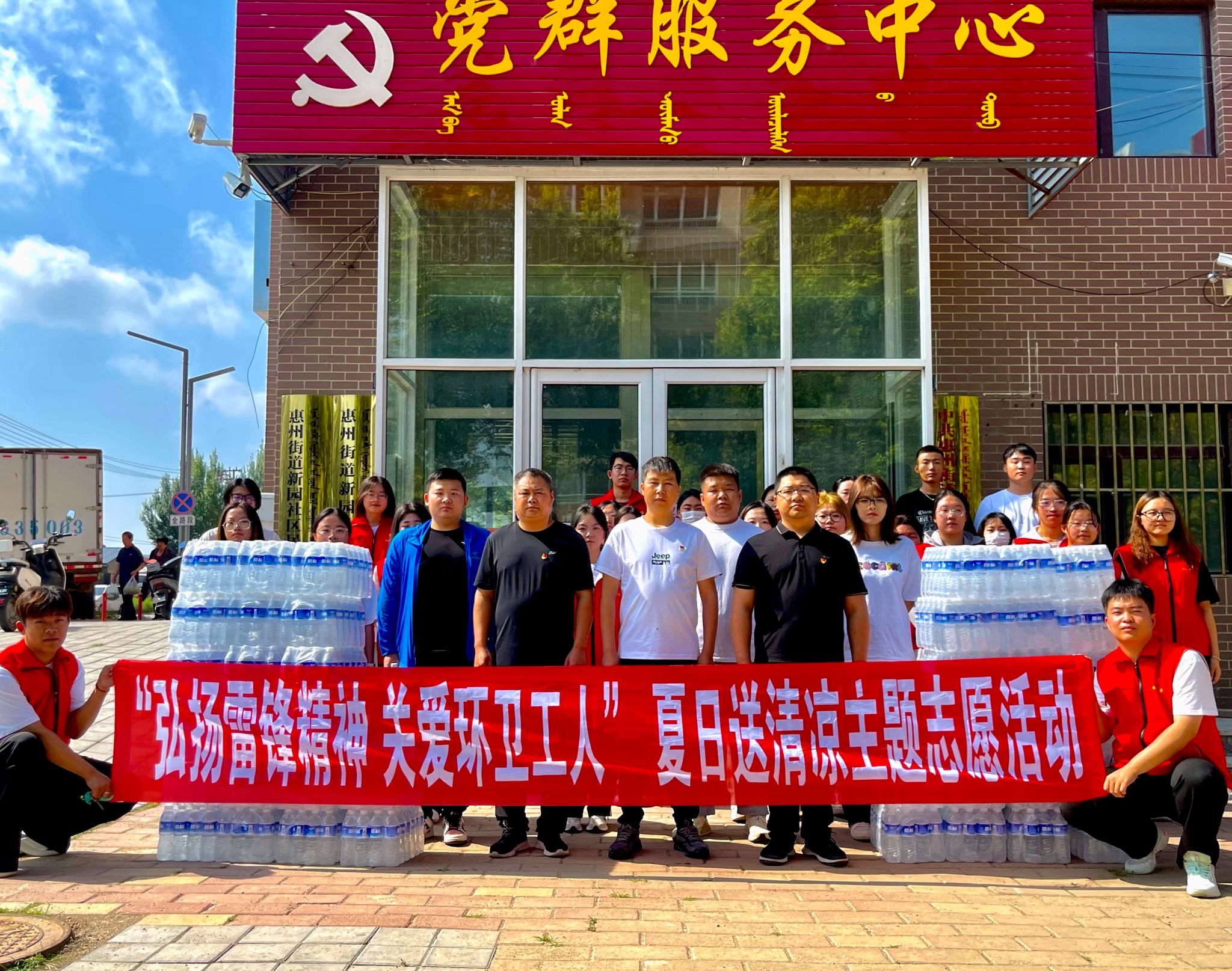 近日,beat365英国官方网站商学院、敖汉旗团委、新惠镇新园社区联合开展了“弘扬雷锋精神 关爱环卫工人”夏日送清凉主慰问活动,为辛勤工作的环卫工人送上一份清凉与关怀。本次活动由beat365英国官方网站商学院团总支书记华国庆、敖汉旗团委书记纪浩宇、新惠镇新园社区党总支书记高庆春以及青年志愿者、“扬帆计划”志愿者等50余人参加启动仪式。