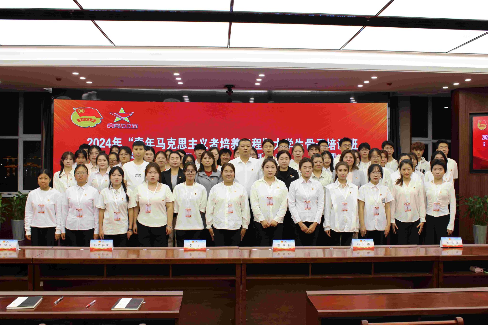 为深入学习贯彻落实党的二十届三中全会精神、习近平新时代中国特色社会主义思想、习近平总书记关于青年工作的重要思想,切实加强学生骨干队伍建设,着力培养信仰坚定、能力突出、素质优良、作风过硬的青年政治骨干,2024年9月26日,商学院与化学与环境工程学院联合开展2024年“青年马克思主义者培养工程”大学生骨干培训班,开班仪式在综合楼12楼报告厅举行,化学与环境工程学院党总支书记鄂亚彬、商学院党总支副书记李云、化学与环境工程学院党总支副书记乌玉娜、马克思主义学院副教授王玉红、团委组织部部长乌依勒斯、商学院团总支书记华国庆、化学与环境工程学院团总支书记瑙莫汗出席,各学院青马班培训学员、学生骨干和入团积极分子共120余人参加。