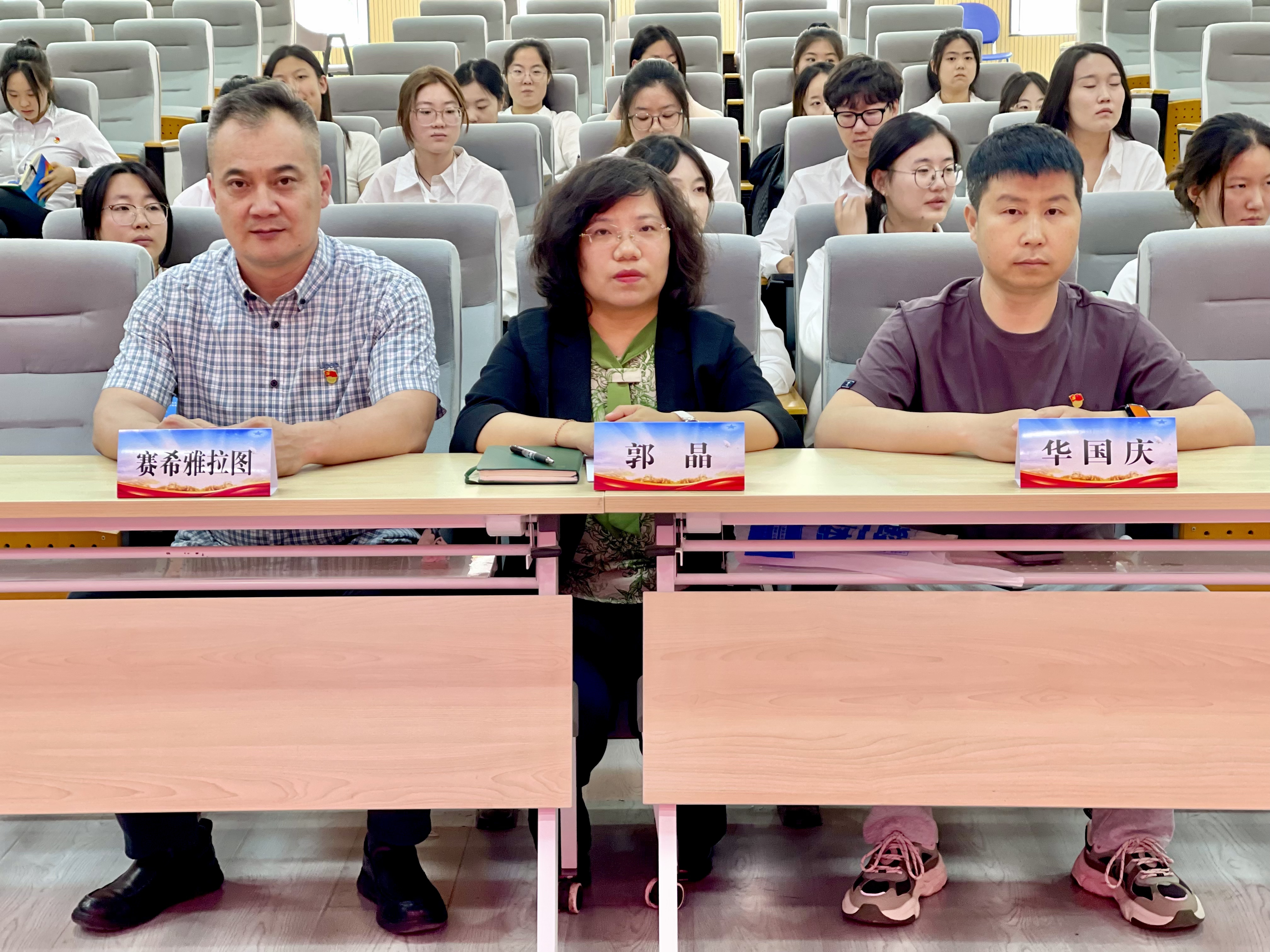 商学院副院长赛希雅拉图商学院第二期“青马班”授旗,学员代表宝鲁尔接旗。