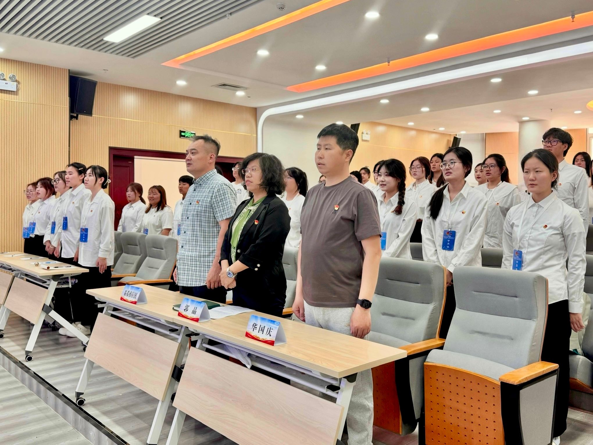 开班仪式在庄严嘹亮的歌声中拉开帷幕,全体师生肃立齐唱歌,激昂旋律点燃开班仪式
