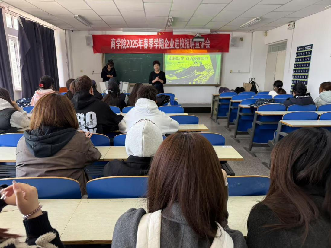 为深入贯彻落实学校关于促进毕业生就业工作的部署要求,进一步深化校企合作,拓宽学生就业渠道3月31日,商学院在尚智楼304教室成功举办了两场2025年春季学期企业进校招聘宣讲会。本次活动邀请内蒙古蒙政教育信息科技有限公司、北京万极咨询有限公司等企业校宣讲,提供就业岗位30余个。