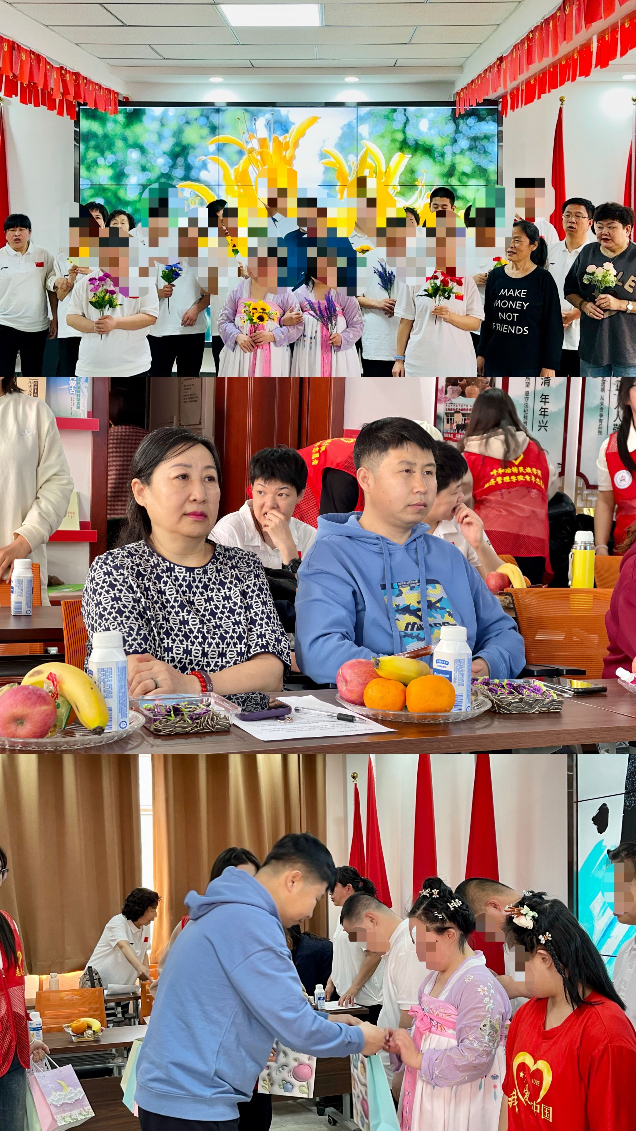 为呼吁社会公众唐氏儿孤独症谱系障碍儿童少年的认识与关注,促进尊重与理解,3月25日经济管理学院团总支联合新城区锡林北路街道三角线社区、内蒙古七色阳光公益联盟开展“关爱唐宝、守护星宝、与爱同行、共筑希望”主题活动,本次活动在三角线社区开展