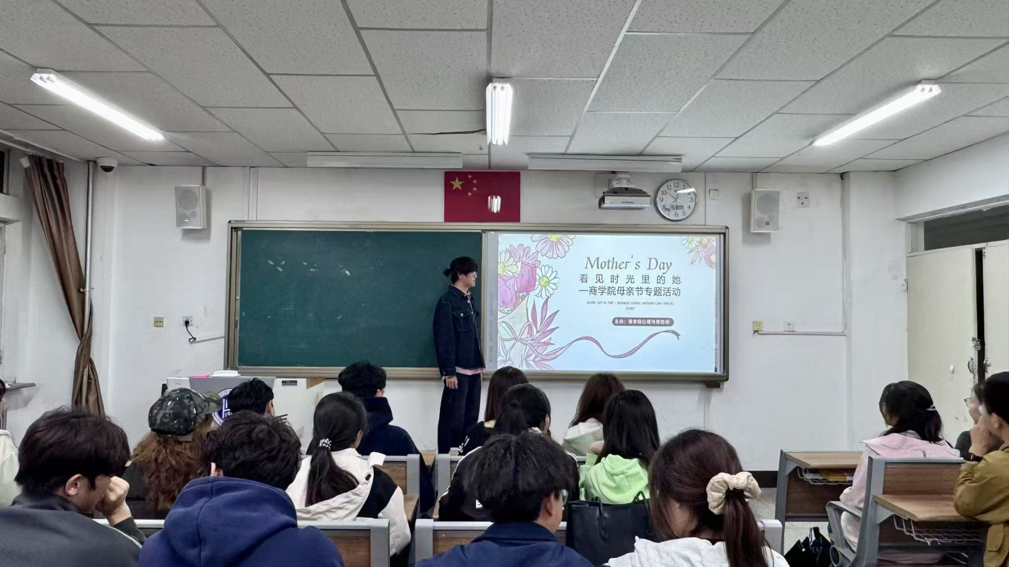 为进一步提升心理育人质量,弘扬感恩母亲、珍视亲情的传统美德,让同学们在活动中深刻体会母爱的伟大与无私,同时也为子女提供一个向母亲表达爱意与感激的平台。5月8日晚,商学院2024级学生在尚智楼202教室成功举办了一场以“看见时光里的她”为主题的母亲节心理沙龙活动。