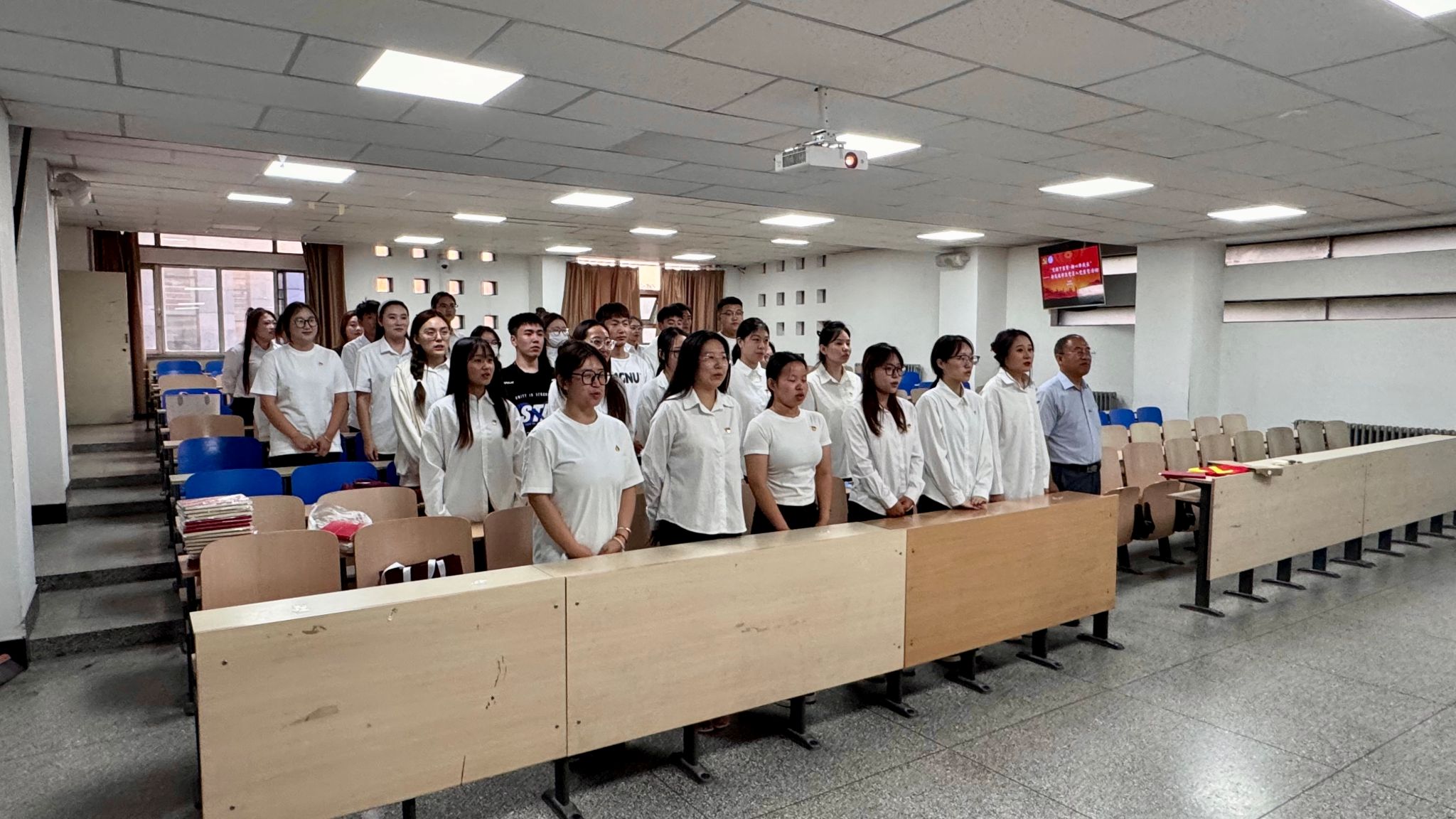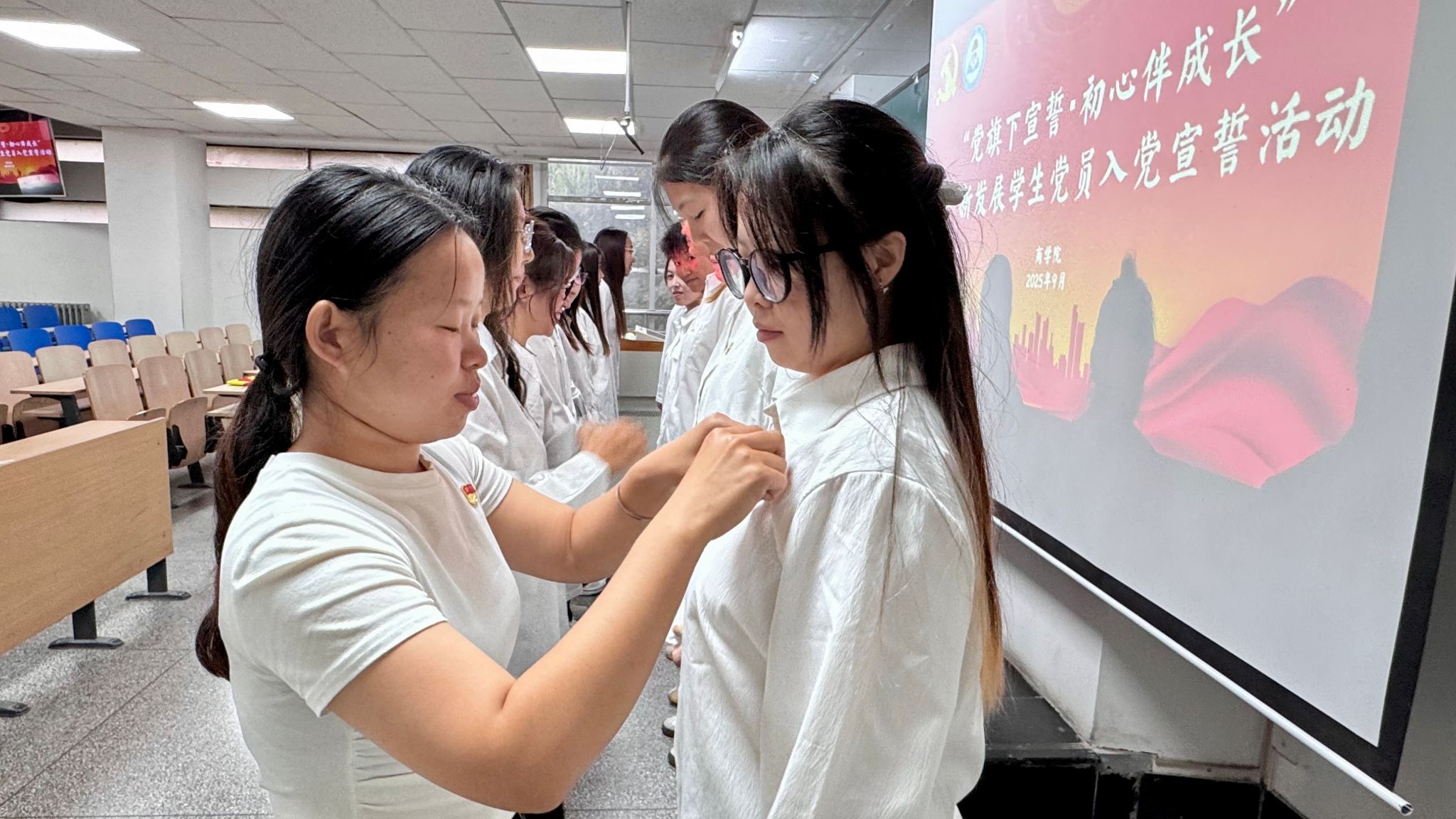 引导新发展学生党员坚定理想信念,强化党员身份意识与责任担当,9 月 16 日,在尚智楼314教室举行学生党员入党宣誓活动。学生第一党支部书记樊寒伟老师、在校党员及全体新发展学生党员参加了此次活动。