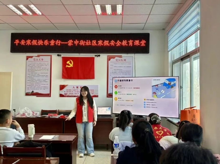 为切实增强社区青少年寒假安全防范意识,提升自我保护能力,1月25日,敖汉旗新惠镇蒙中街社区爱心课堂开设“平安寒假快乐童行”安全教育专题课堂,商学院青年志愿者与辖区青少年齐聚一堂,以生动互动的形式筑牢安全防线,为孩子们的寒假生活系上“安全带”。