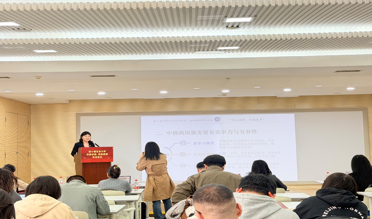 阿拉坦格日乐教授做了题为《“一带一路”背景下中俄服务贸易竞争力与路径研究》的学术报告,聚焦中俄服务贸易的前沿问题,体现了扎实的理论功底与开阔的国际视野,获得与会专家高度评价。