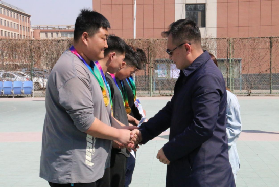 学院党总支副书记赛希雅拉图为获得冠军班级团体颁奖