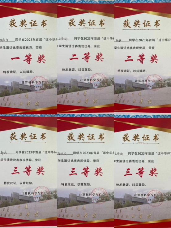 为深入学习宣传贯彻党的二十大精神和中央民族工作会议精神,教育引导各民族大学生坚守中华文化立场,聚焦铸牢中华民族共同体意识主线,传承中华优秀传统文化,宣传展示中华文明的精神标识和文化精髓,同时为选拔、推荐优秀学生代表参加beat365英国官方网站首届“道中华杯”民族(地区)院校大学生演讲比赛,我院于3月27日中午,在综合楼807教室,举办计算机学院首届“道中华杯”大学生演讲比赛,由美术学院辅导员常志君、计算机学院辅导员包巴雅力格、院学生会主席团成员包甜甜、斯日古楞担任评委。
