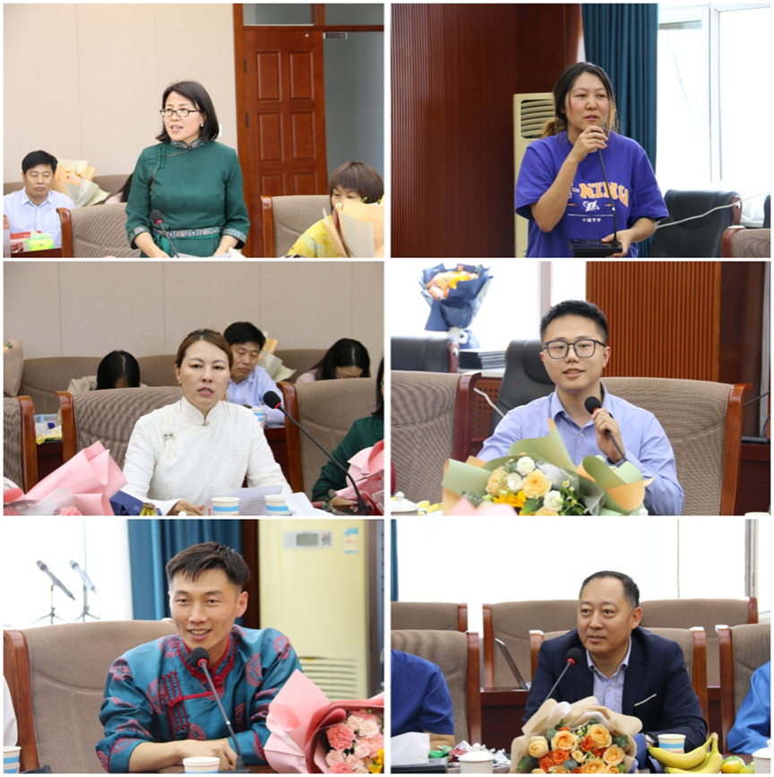 活动中,荣休教师斯日古楞、冯培禄教授分享他们40年的教育教学经验和人生感悟;获得2024年“师德标兵”“三育人”先进个人依次分享经验交流;企业和新入职教师分享感言。