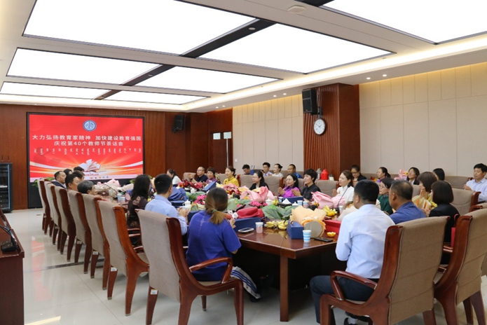 9月10日中午,我院在综合楼11楼会议室举办“大力弘扬教育家精神,加快建设教育强国”庆祝第40个教师节茶话会,学院全体教职员工欢聚一堂,共庆佳节。