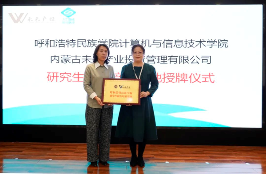 3月31日,我院与内蒙古未来产业投资管理有限公司在金桥“双创”示范区举行研究生联合培养基地授牌仪式。学院党总支书记王水英、副书记色登丹巴和教师代表,内蒙古未来产业投资管理有限公司常务副总经理刘艳玲、未来人才发展有限公司副总经理赵瑾瑞出席授牌仪式。