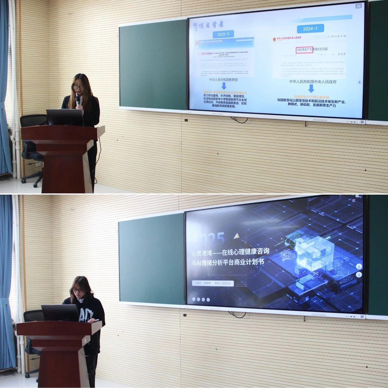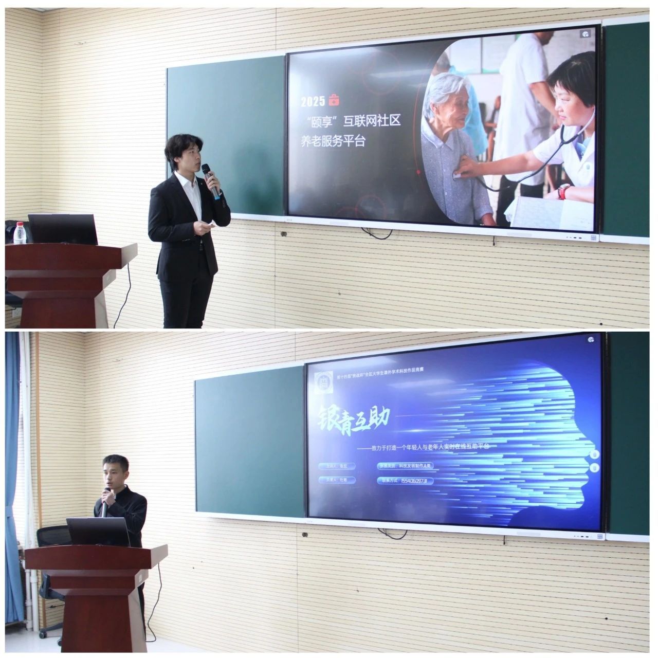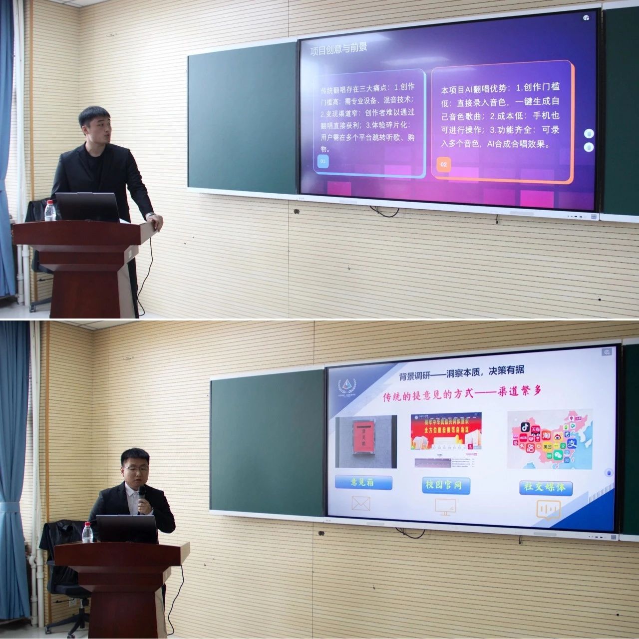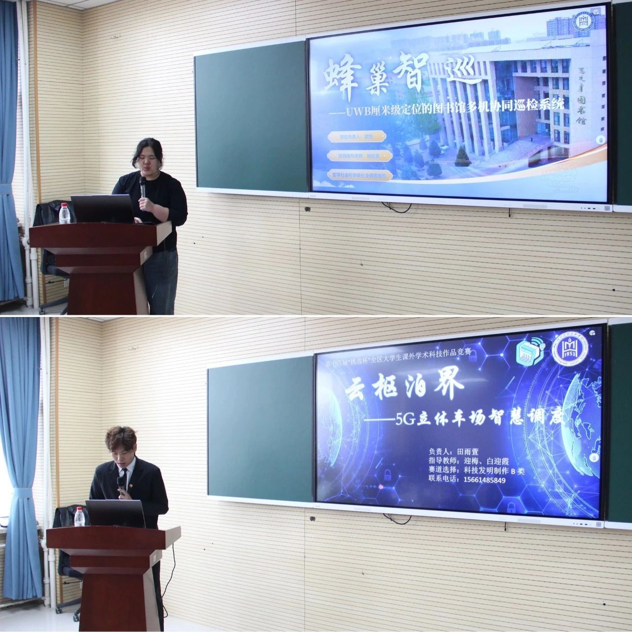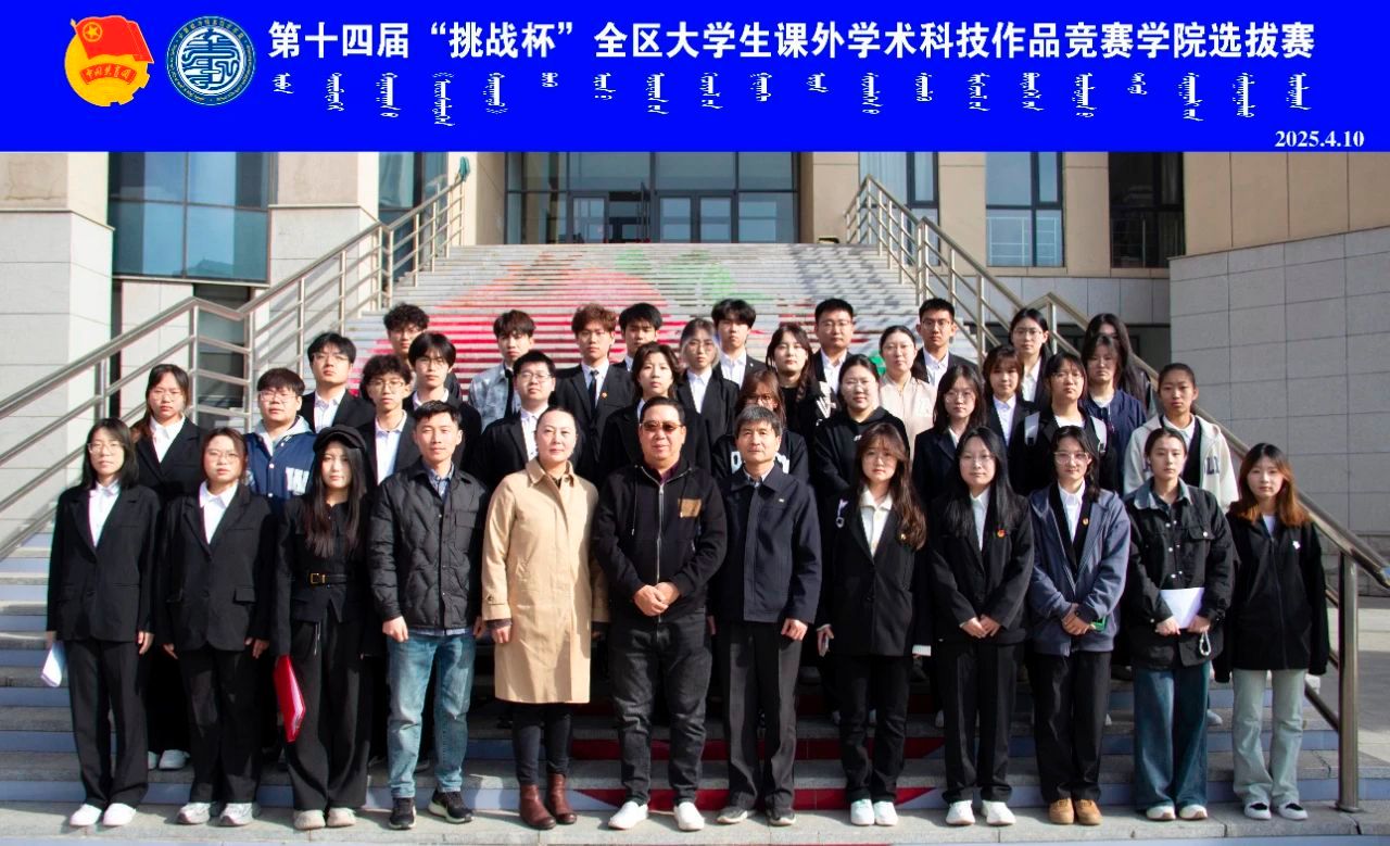 2025年4月10日上午,在综合楼802教室,举办第十四届“挑战杯”大学生课外学术科技作品竞赛学院选拔赛。本次比赛邀请内蒙古工业大学励德众创空间主任,心物创新创业专家教研室专家导师武敏、我院银龄计划教师王文浪、郭一超担任评委。