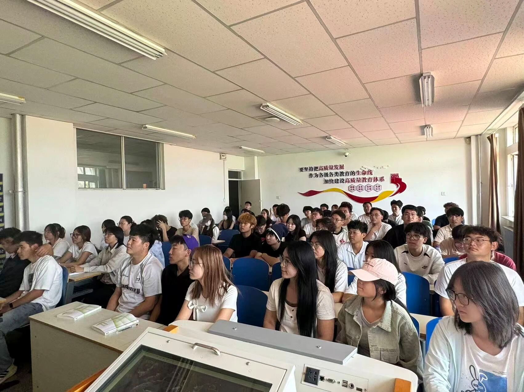 2025年9月3日,中国人民抗日战争暨世界反法西斯战争胜利80周年纪念日,计算机与信息技术学院组织全体师生在百年讲堂观看盛大阅兵仪式。