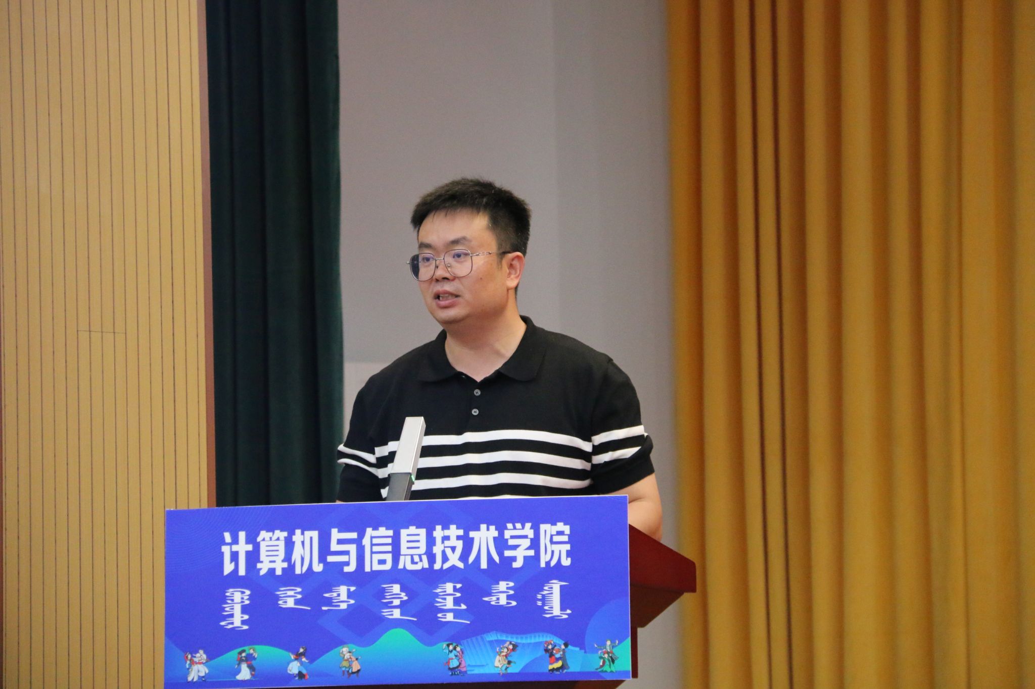 2024年8月31日下午,计算机与信息技术学院在学术报告厅召开2024级新生见面会暨军训动员会,学院党总支书记王水英、院长包乌格德勒、党总支副书记色登丹巴、团总支书记包巴雅力格及2024级新生班主任、辅导员、2024级全体新生参会。由学院团总支书记包巴雅力格主持会议。
