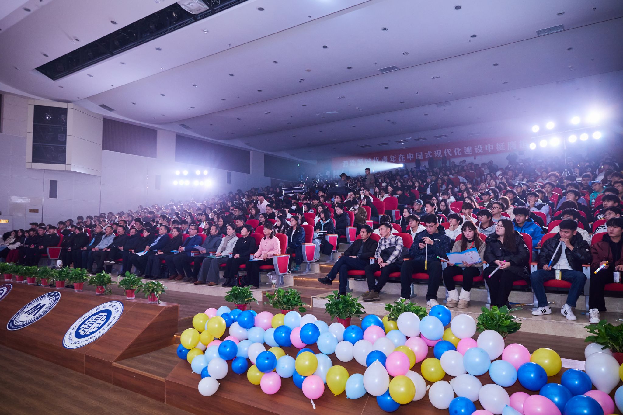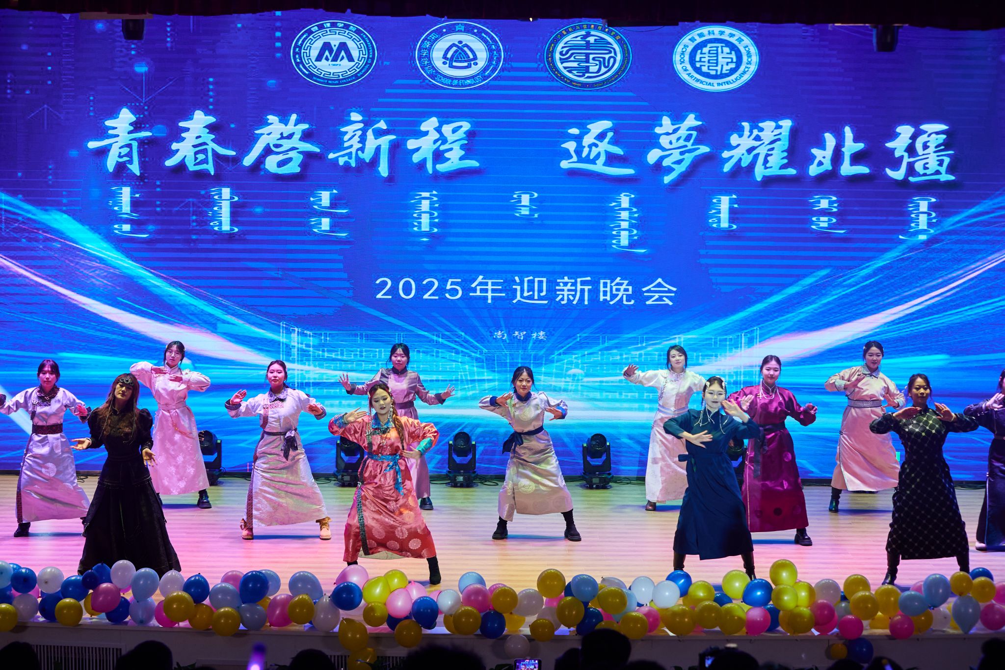为深入学习贯彻习近平新时代中国特色社会主义思想和党的二十大、二十届四中全会精神,积极迎接2025级新生,引导青年学子进一步“感党恩、听党话、跟党走”,展现青年学子蓬勃向上的青春风貌与担当,2025年11月27日晚,由管理学院、民族学学院、计算机与信息技术学院、智能科学学院联合举办的“青春启新程 逐梦耀北疆”2025年迎新晚会在铸牢教育馆二楼报告厅盛大启幕。各学院党总支书记、院长、各科室负责人、班主任、辅导员代表、2025级新生出席晚会,共同见证这场青春盛会。