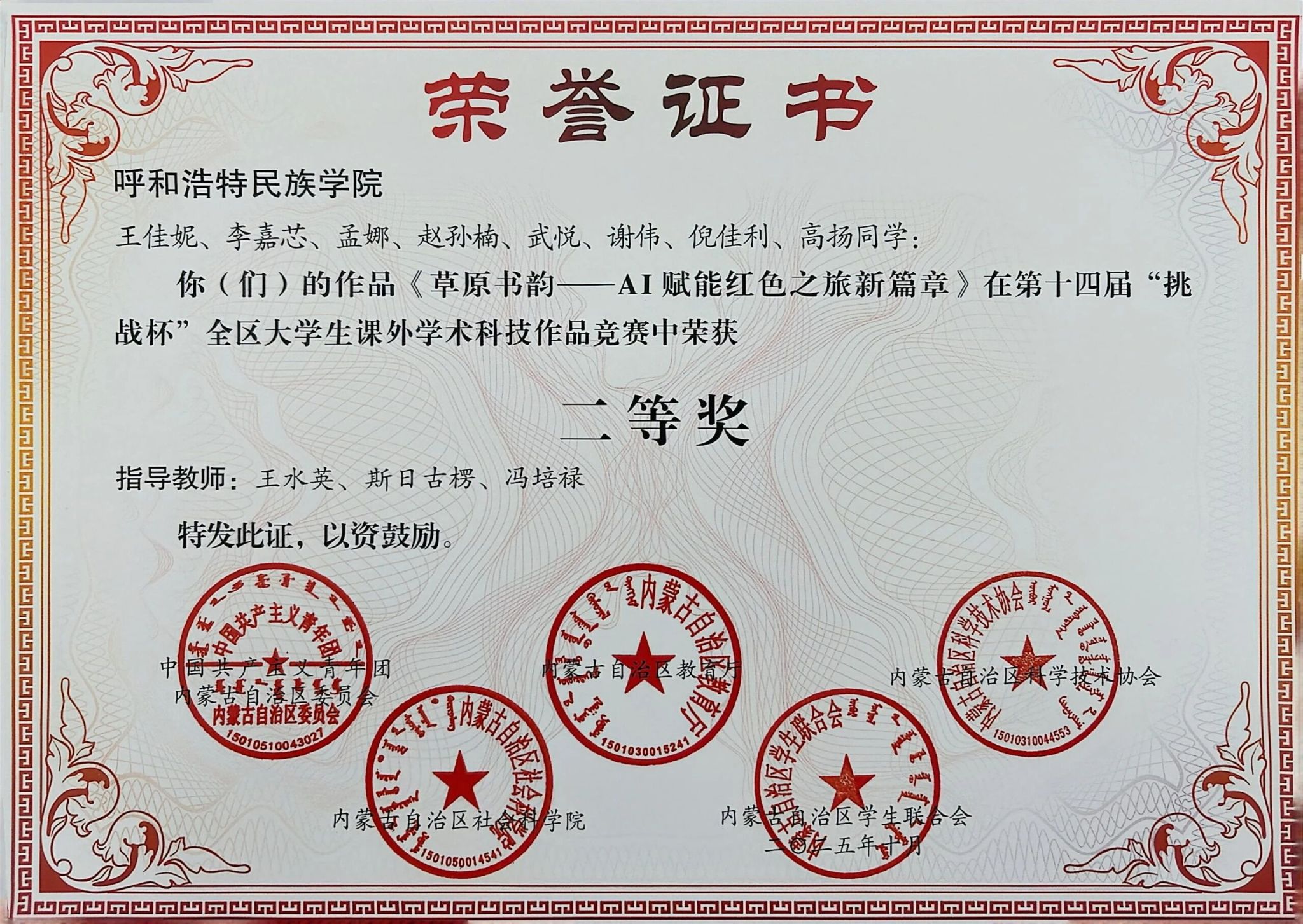 为深入贯彻落实国家创新驱动发展战略,激发大学生创新热情、提升学术素养,2025年6月8日至10日,第十四届“挑战杯”全区大学生课外学术科技作品竞赛决赛在内蒙古大学玉泉校区隆重举行。本次竞赛由内蒙古自治区团委、教育厅等单位联合主办,内蒙古大学承办,吸引了全区多所高校千余名师生参与。
