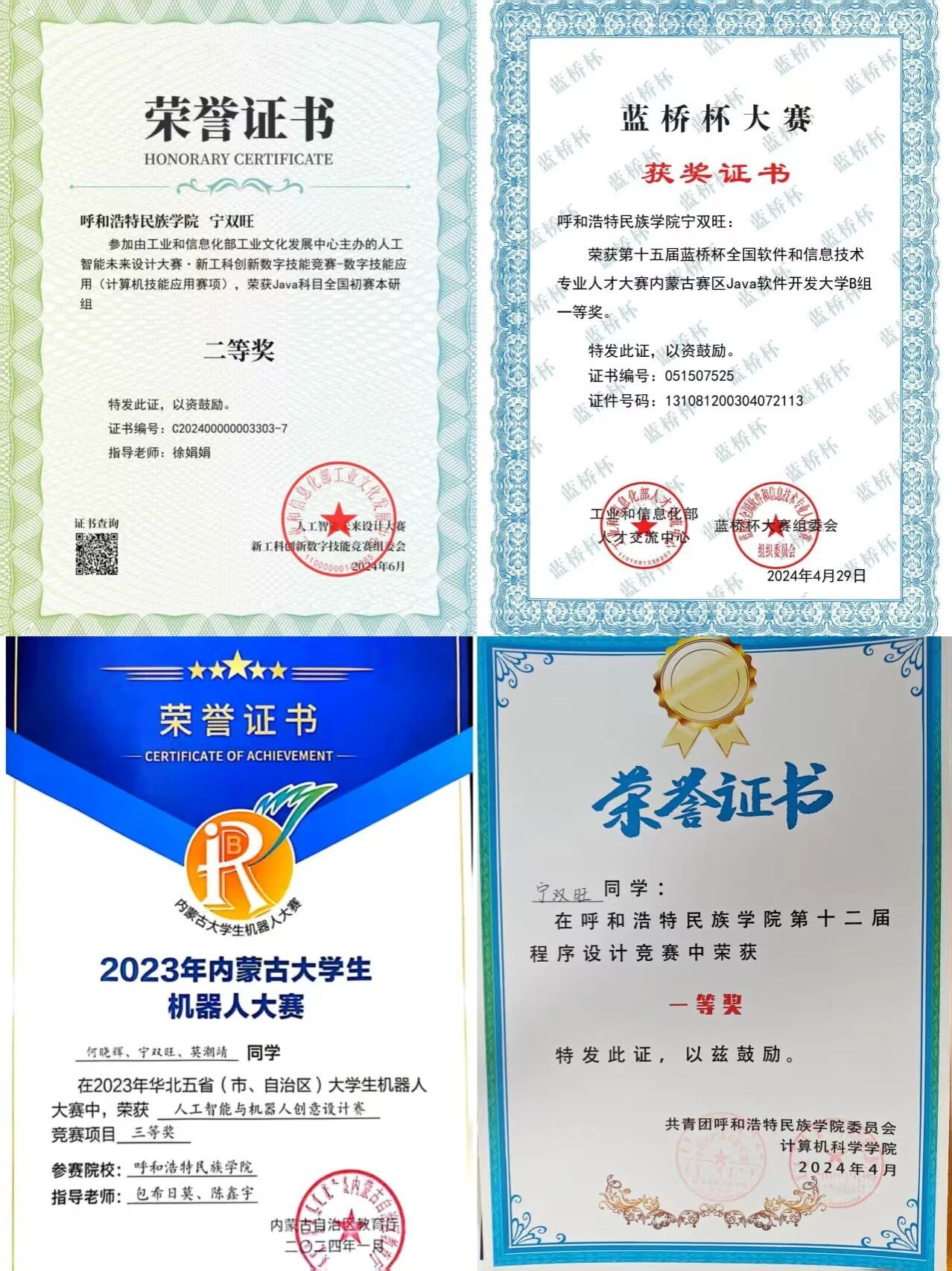 2024年5月获得程序设计大赛(自治区赛)优胜奖