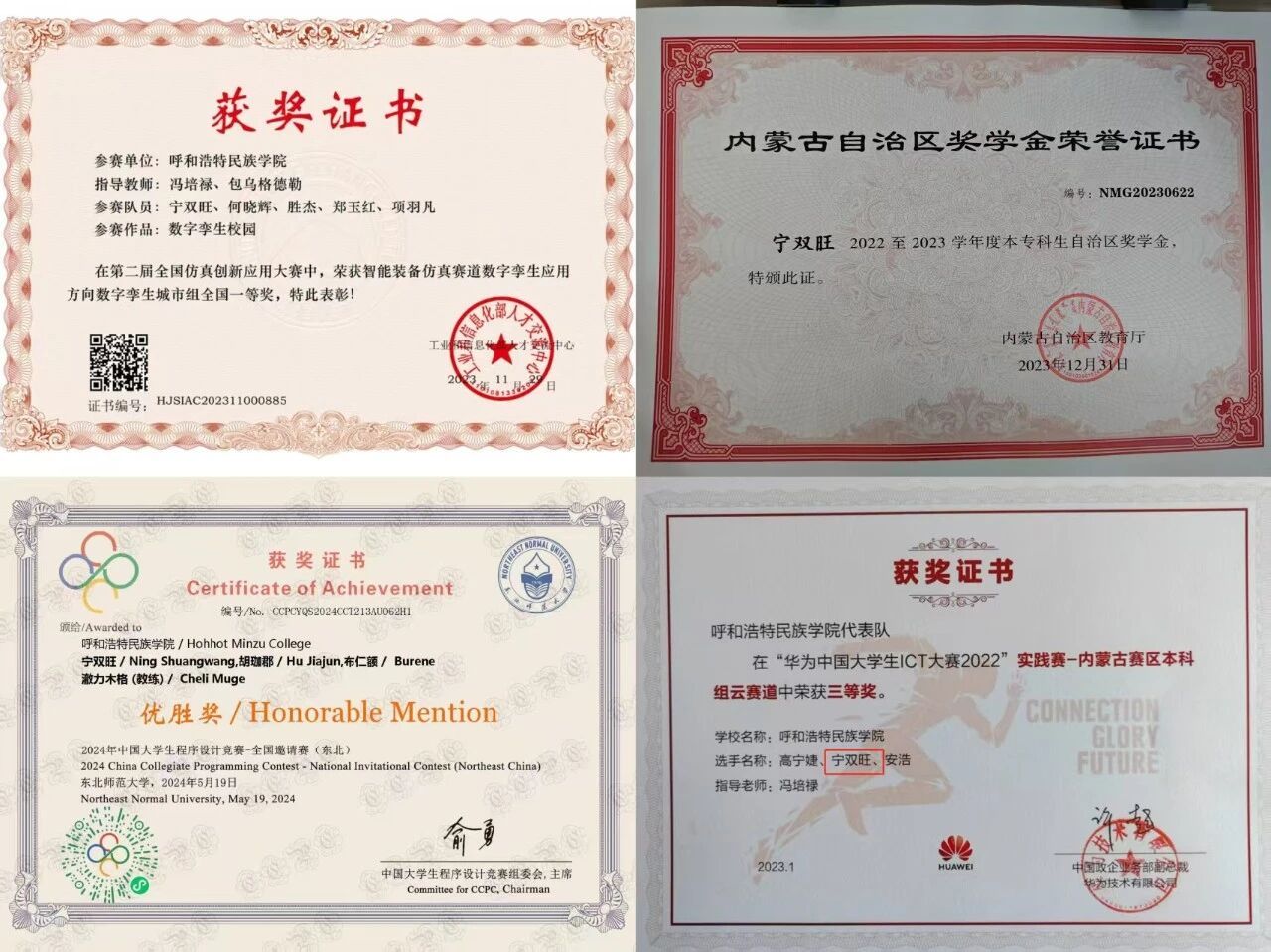 2022年12月获得华为ICT内蒙古三等奖
