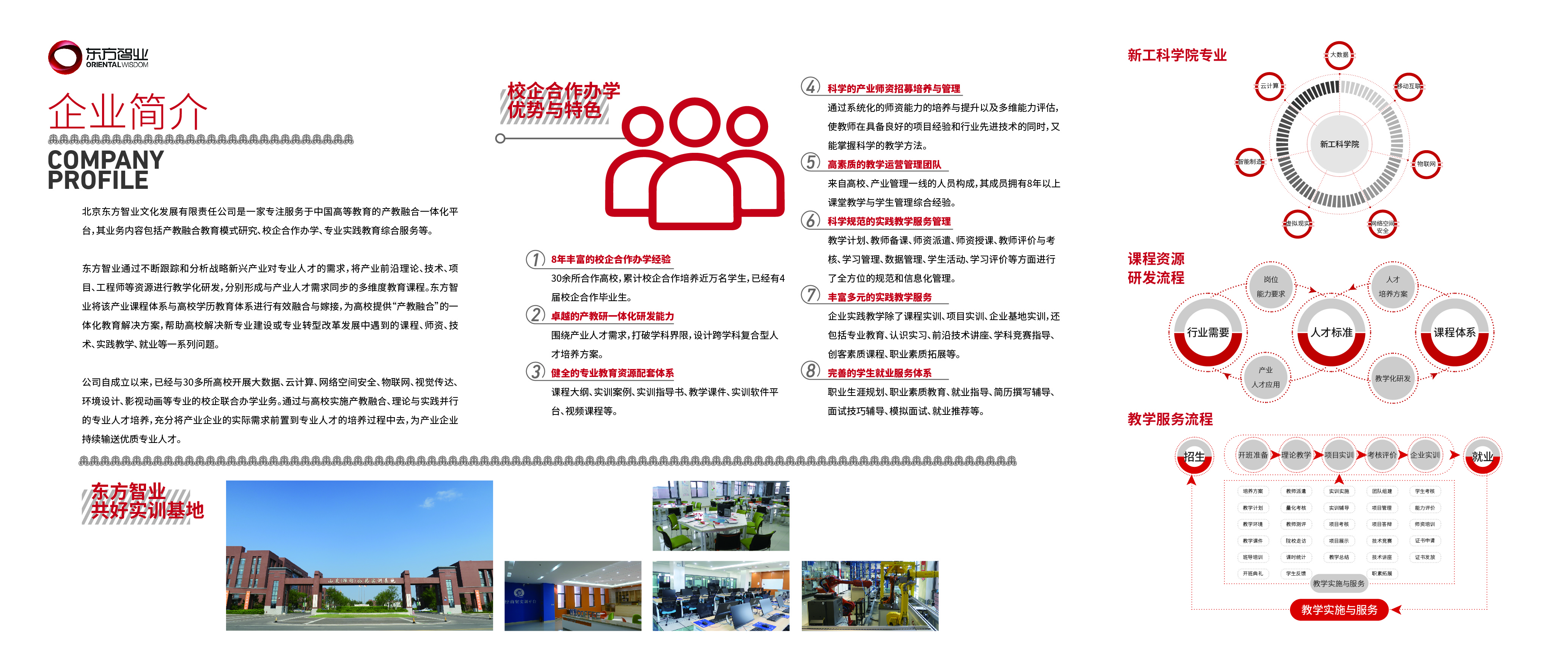 北京东方智业文化发展有限责任公司(简称东方智业)是一家专注服务于中国高等教育的产教融合一体化平台,其业务内容包括产教融合教育模式研究、校企合作办学、专业实践教育综合服务等。