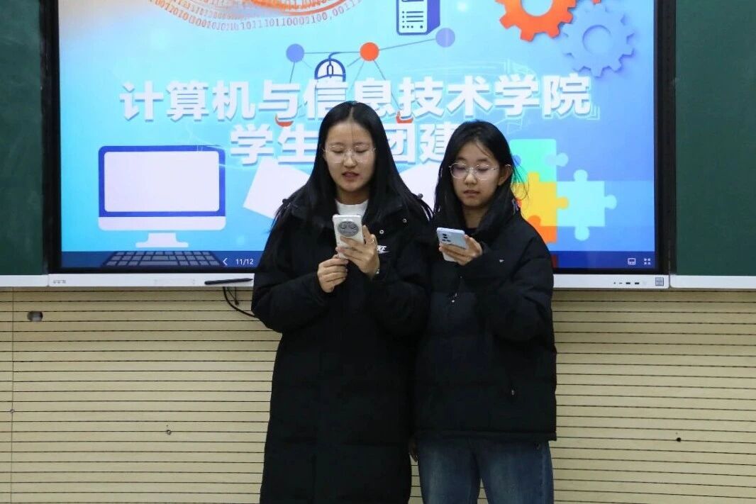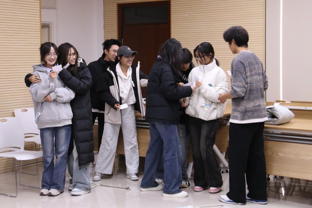 活动期间,学生会成员暂时卸下日常工作的严谨状态,全身心投入至互动游戏环节。团队凝聚力亦在轻松愉快的互动交流中悄然提升,充分展现了学生会成员积极协作的良好风貌。