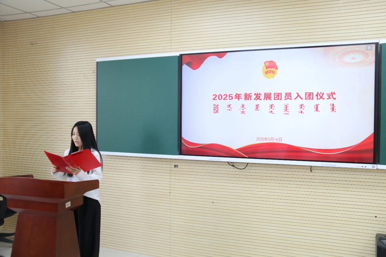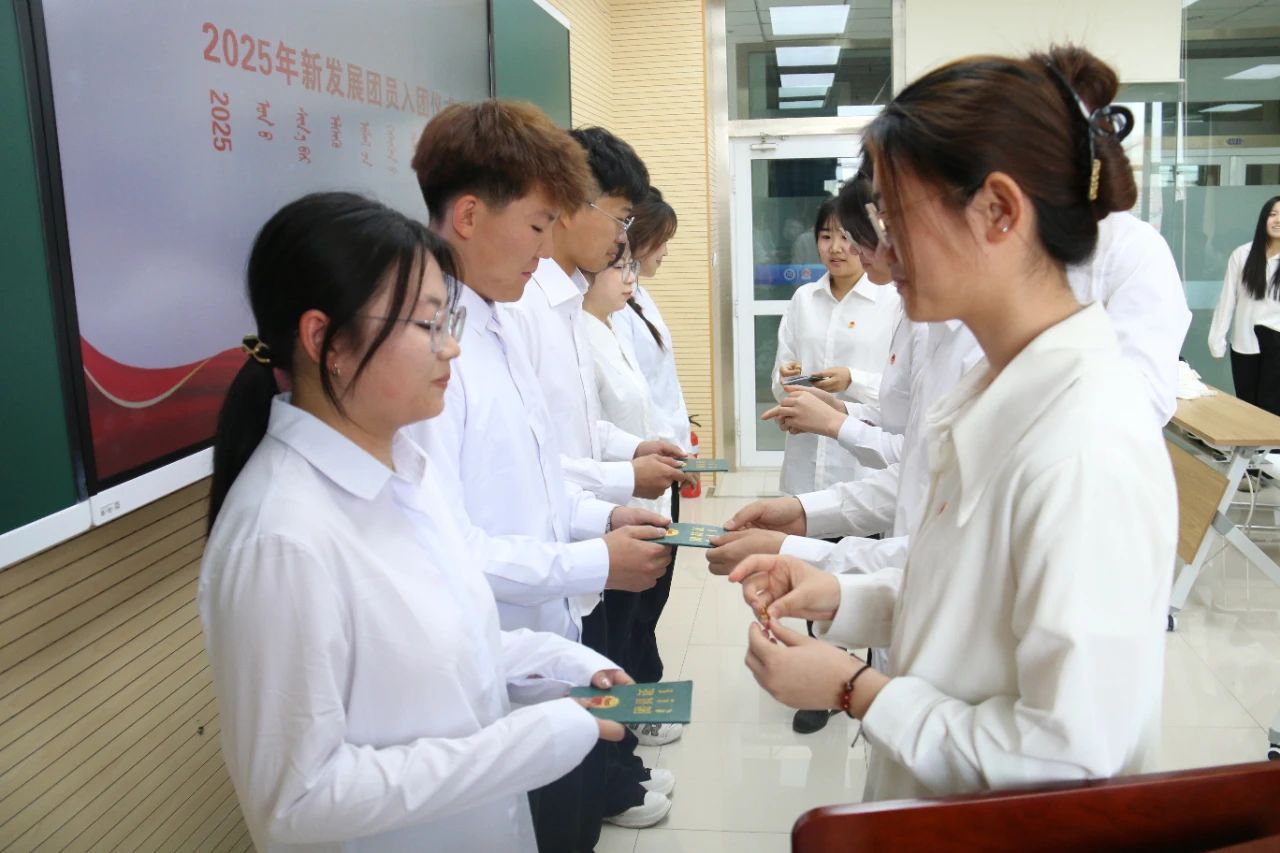 学院团总支书记包巴雅力格出席仪式并对新团员提出殷切期望,希望他们筑牢思想根基、勤奋刻苦学习、塑造优良品德、勇于担当作为,在青春的磨砺中实现个人价值,让胸前的团徽绽放更耀眼的光芒。