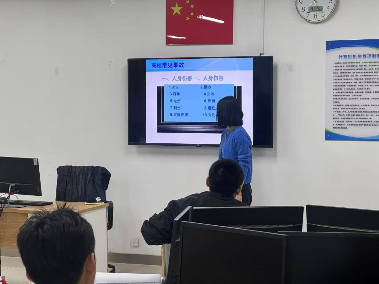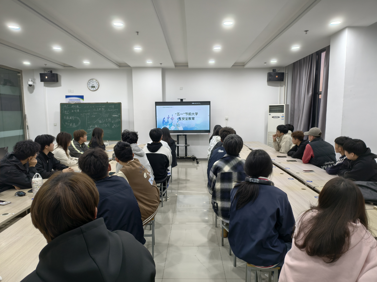 为强化学生安全意识,营造平安校园环境,我院组织各班级开展五一劳动节前学生安全教育主题班会。
