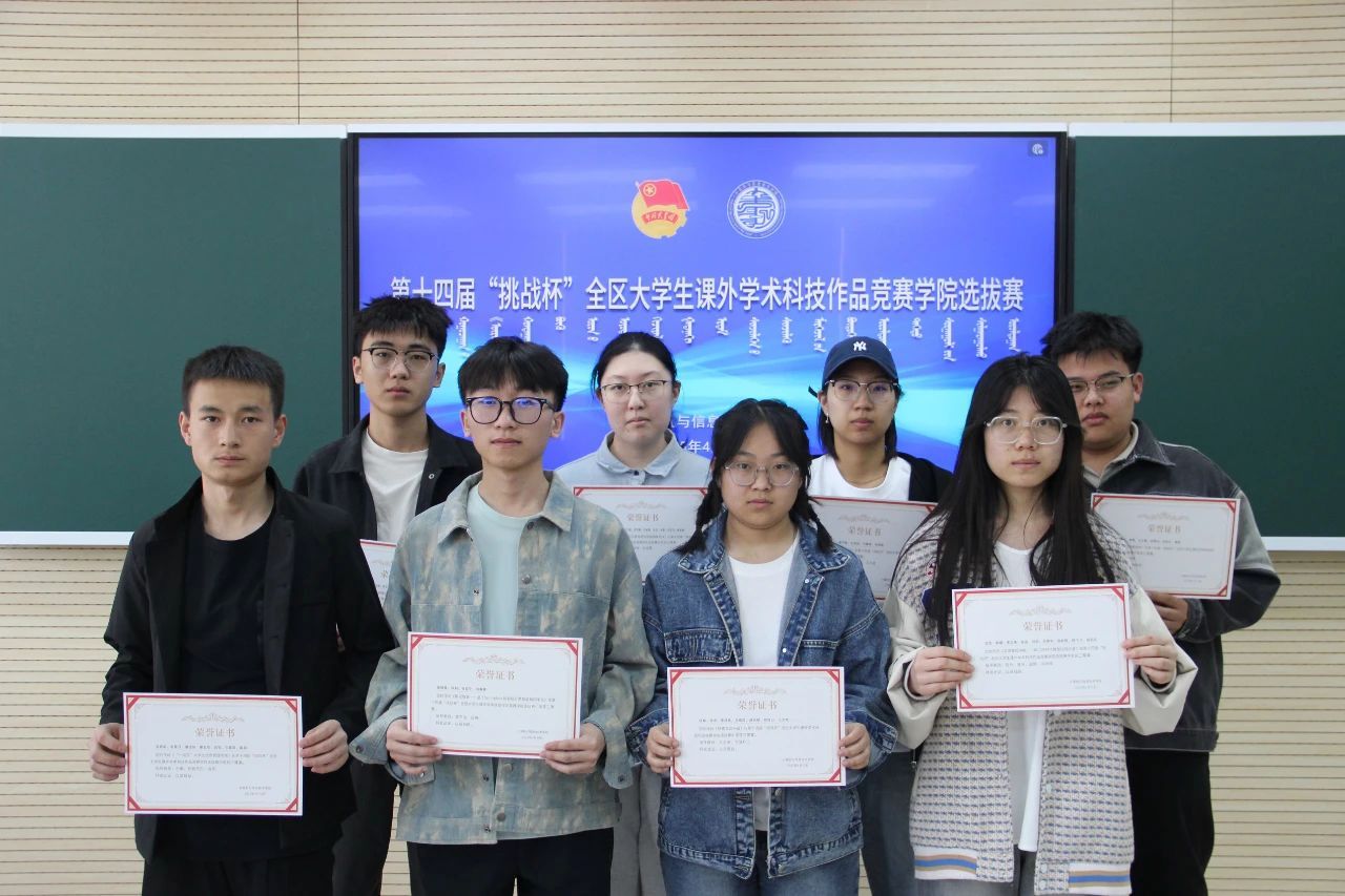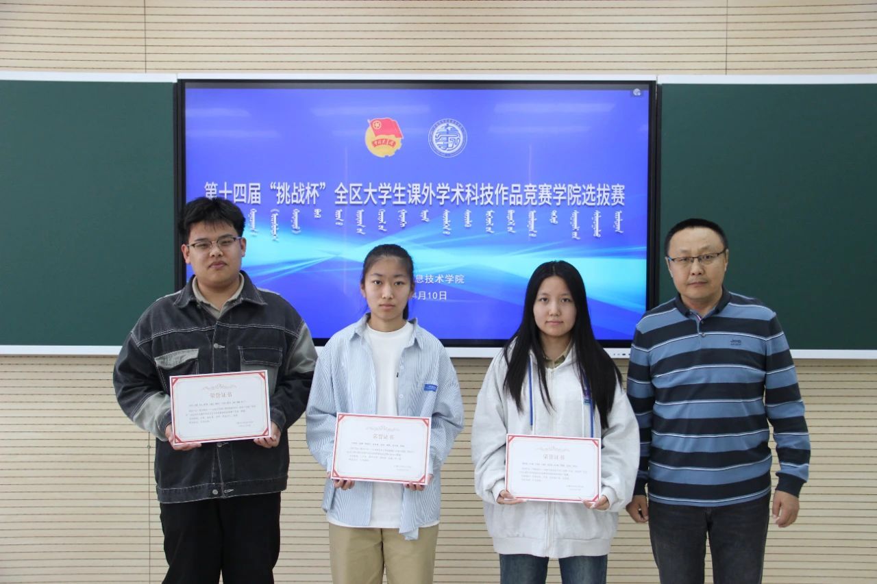 2025年4月15日,在综合楼802教室,举行第十四届“挑战杯”大学生课外学术科技作品竞赛颁奖仪式。本次比赛最终评选出一等奖3项、二等奖4项、三等奖8项、优秀奖15项。