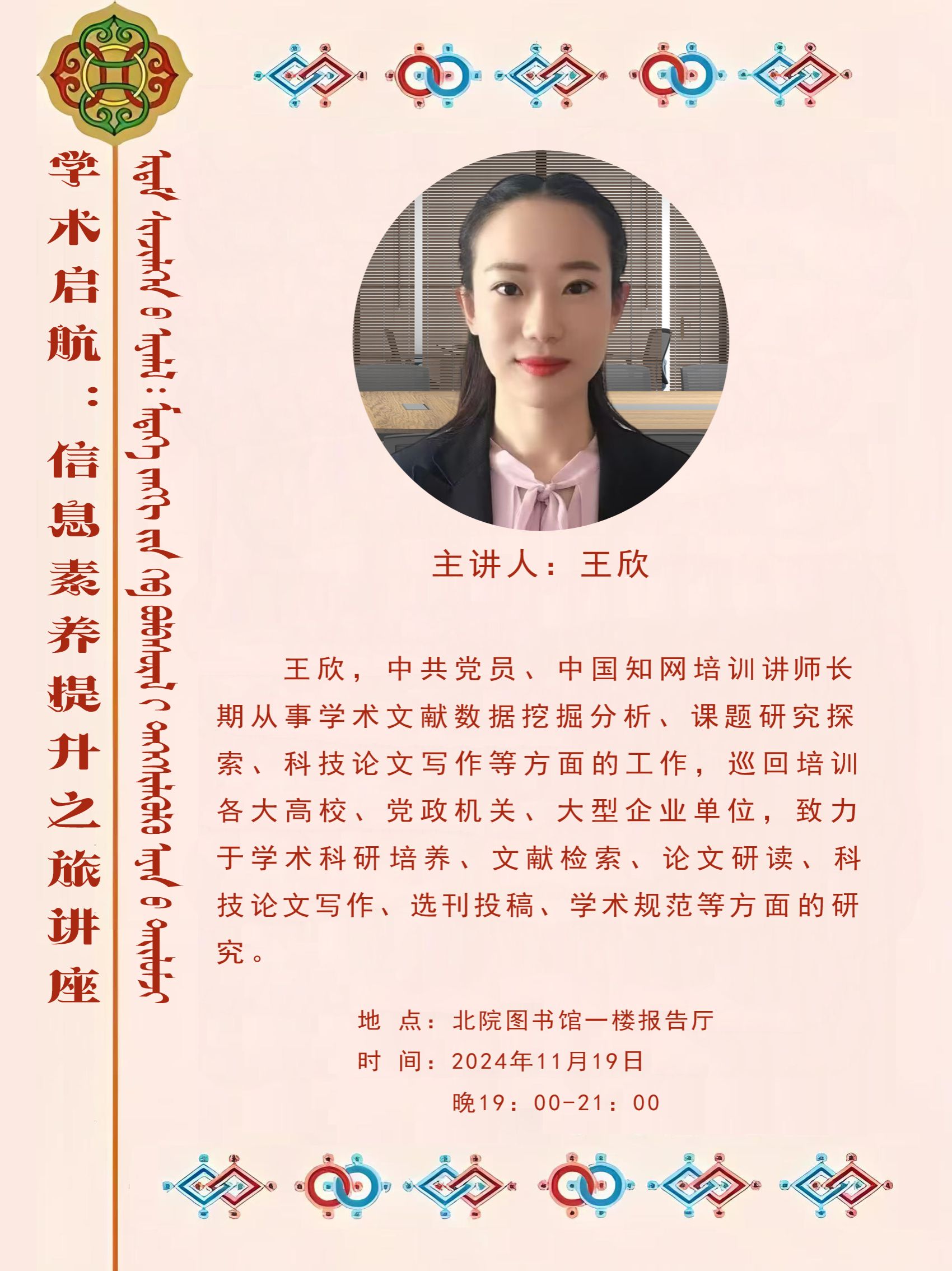 为帮助我院学生全面了解中国知网数据库的功能和价值,提高文献检索能力,20241119日晚,我院在北院图书馆一楼报告厅举办学术启航-信息素养提升之旅培训讲座。讲座由中国知网培训讲师王欣讲解,一场关于如何在数字化时代提升个人信息素养的讲座吸引了众多学生的关注。