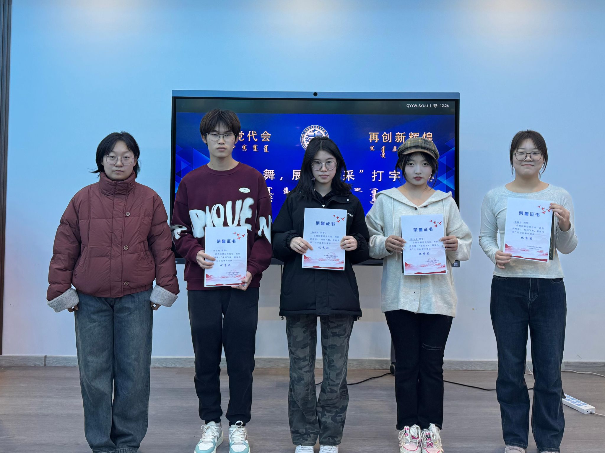 11月19日中午,我院党总支书记王水英、团总支书记包巴雅力格、辅导员云磊作为颁奖嘉宾为获奖同学颁奖。