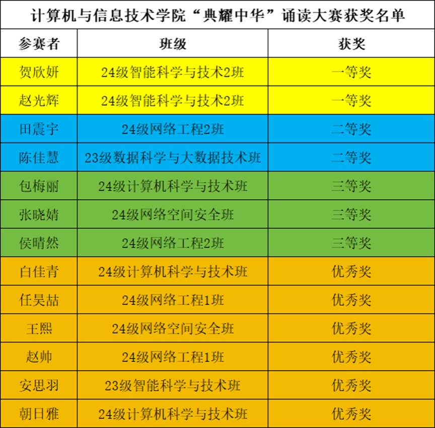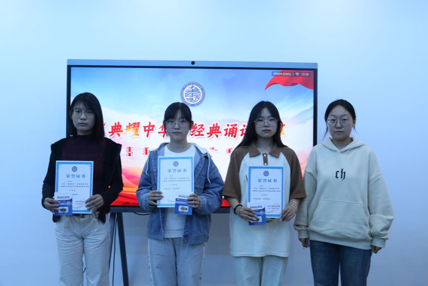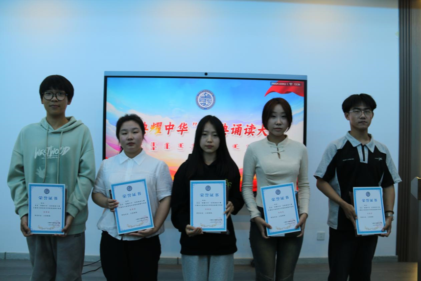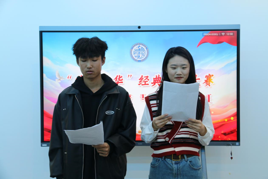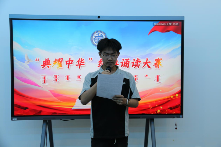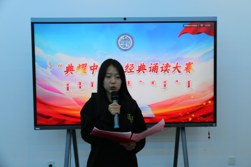 为推广国家通用语言文字宣传力度,引领广大师生亲近中华经典,传承弘扬中华优秀语言文化,丰富校园文化生活努力营造健康文明的校园文化氛围,我院于2024年9月20日中午,在综合楼901教室举办“典耀中华”经典诵读比赛。由学院团总支书记包巴雅力格、辅导员云磊、院学生会主席团成员太玉连、赵国成担任评委。