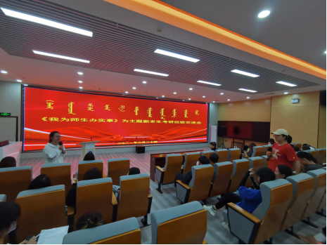 为更好地帮助考研学生解决考研过程中遇到的各种问题,提高学生的考研热情,增强学生考研信心,明确考研目标,6月24日下午三点,学校教务处在图书馆一楼报告厅召开了“我为师生办实事”为主题新老生考研经验交流会,本次交流会上教务处副处长佟繁荣出席并讲话,由往届考研学生梁敏、李乐、武上琦和路茹碧四位同学与学弟学妹们分享考研经验,探讨交流考研相关问题。