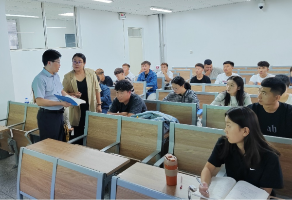 迎接新学期,筑梦新征程。8月28日上午,新学期开学第一天,校党委副书记、校长韩伟新、副校长纳丽娜深入教学一线视察教学运行情况。