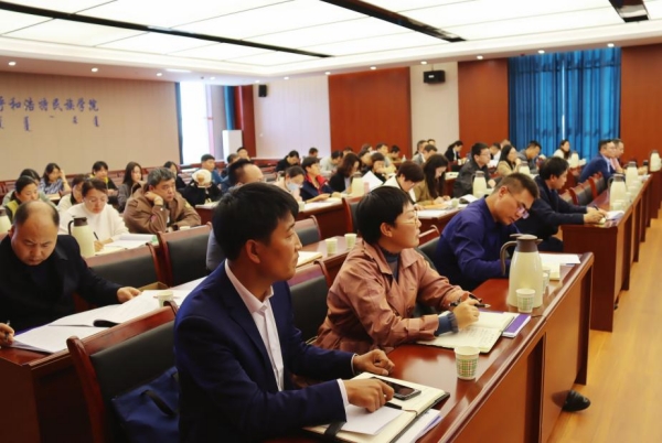 10月13日下午,在综合楼12楼会议室召开学校2023年数据统计工作布置会暨培训会。校党委副书记、校长韩伟新出席并讲话。会议由党委委员、党政办公室主任朝格吉乐图主持。