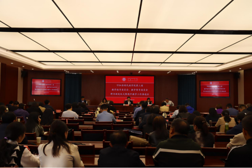 会上,肖查娜宣读了《关于印发“第三届教学督导委员会、教学指导委员会、学术委员会”成员名单的通知》,并从筹备“一庆”、实施“一查”、举办“两会”、组织“两培”、撰写“三稿”、参加“三赛”六个方面,对学校下一阶段的教学重点工作进行了部署。教学指导委员会副主任委员永春教授、教学督导委员会委员胡毕斯哈拉图代表全体委员先后做表态发言,表达了委员们将不辱使命,为学校高质量发展发光发热、贡献力量的信心和决心。教务处副处长额日德木图通报了本年度各级各类教学项目申报和评选的情况,解读了教材工作中发现的问题并提出了解决方案。教务处副处长姚全福安排了本学期全校听课、期中教学检查等工作,布置了学校第三届课程思政教学比赛相关事宜。