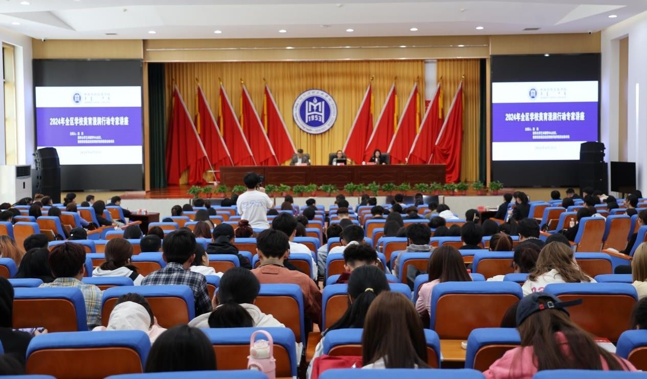 教务处全体人员、各二级学院院长、学校美育教研室成员、学生代表近400人聆听讲座。