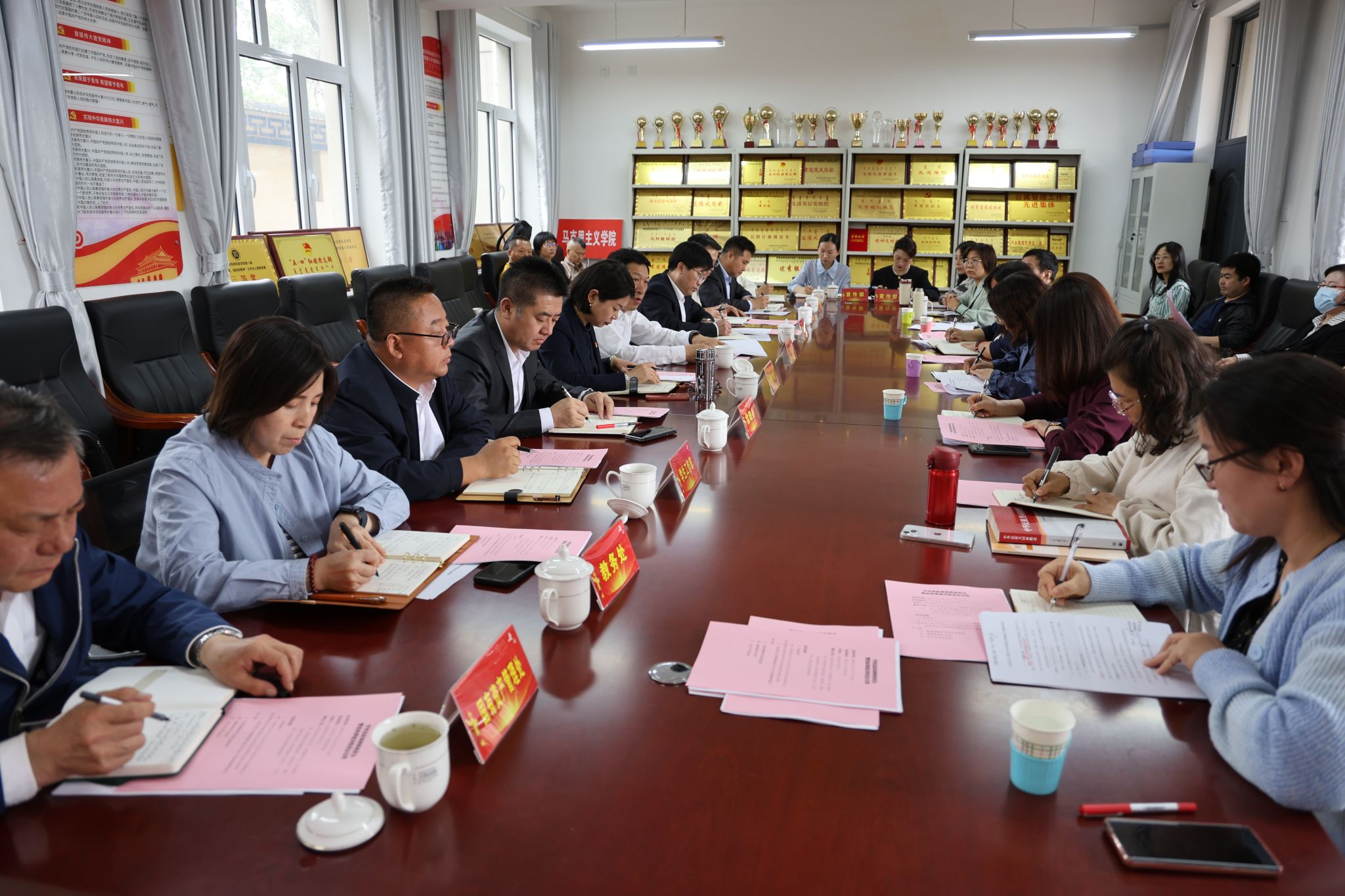 韩伟新强调,一是对标对表新时代思政课建设标准和马克思主义学院建设标准,逐项梳理、仔细研究,进一步明确任务及责任部门,全盘谋划、统筹安排,健全突出教学优先的评价体系,完善教师地位和待遇保障机制,切实提升思政课建设水平,推动马克思主义学院高质量发展。二是马克思主义学院要主动谋划、理清思路,根据学院学科发展、师资队伍实际情况进一步凝练教学研究方向,注重团队建设和科研平台建设,不断提升教学科研软实力,作出实实在在的“硬成绩”。三是进一步凝聚思政课建设的强大合力,相关职能部门要把本次推进会提出的难点堵点问题做好全面梳理,列入重要议程,统筹谋划、逐项分解、细化任务,加快推动落实,实现同频共振。