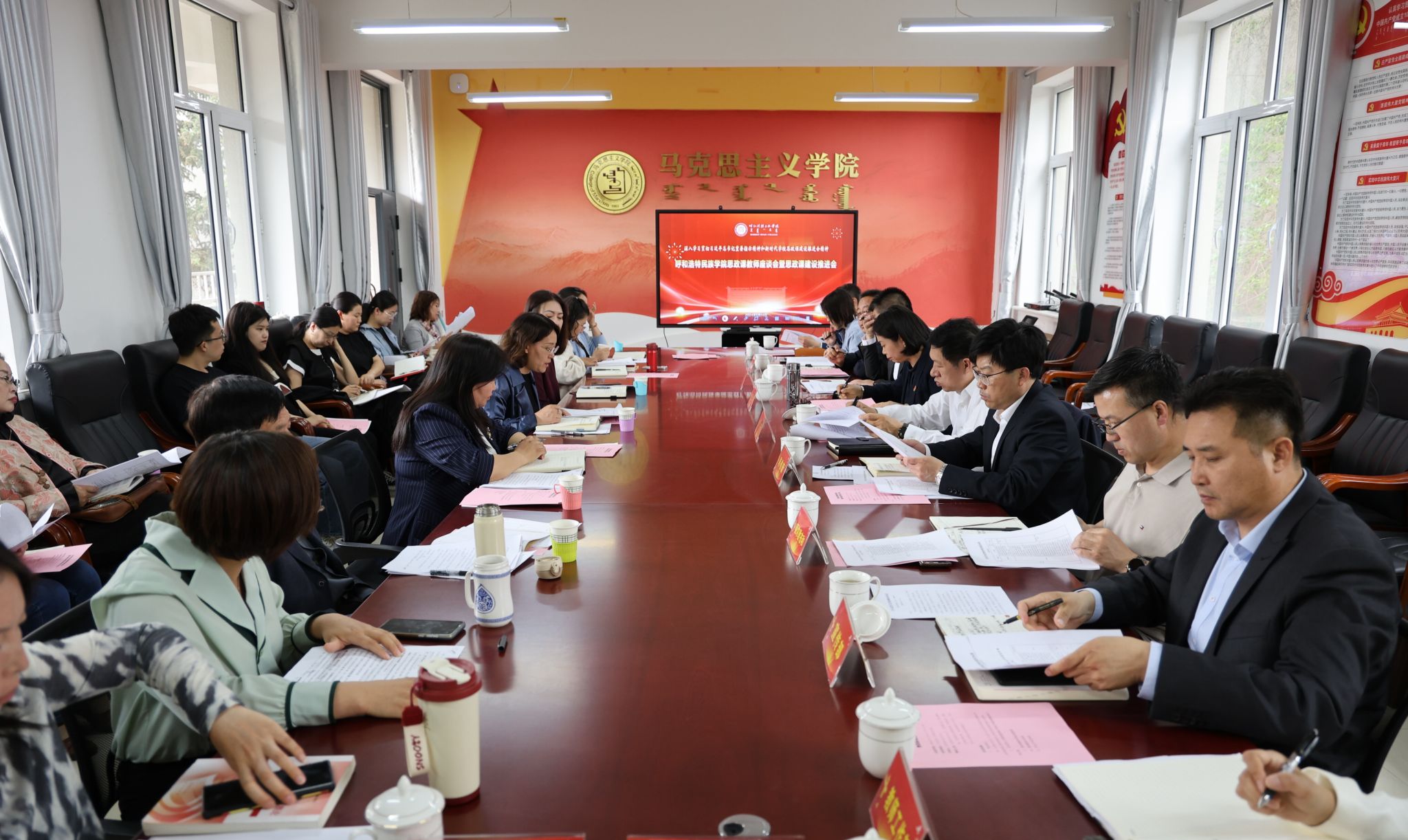 5月14日,beat365官网召开思政课教师座谈会暨思政课建设推进会,召集全体思政课教师,第一时间传达学习、第一速度谋划落实习近平总书记对思政课建设作出的重要指示精神。校党委书记刘九万主持会议并讲话,党委副书记、校长韩伟新出席会议并讲话,党委副书记格根哈斯,党委委员、副校长额尔敦布和出席会议。