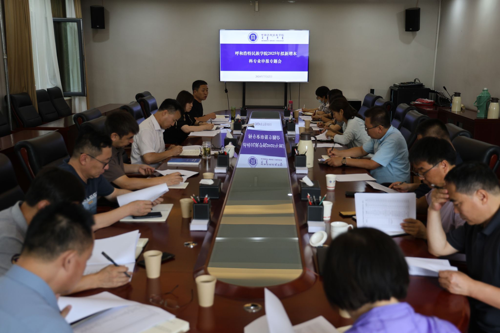 7月12日,学校在办公楼二楼会议室召开了2025年拟新增专业申报专题会。党委委员、副校长额尔敦布和出席并主持会议。