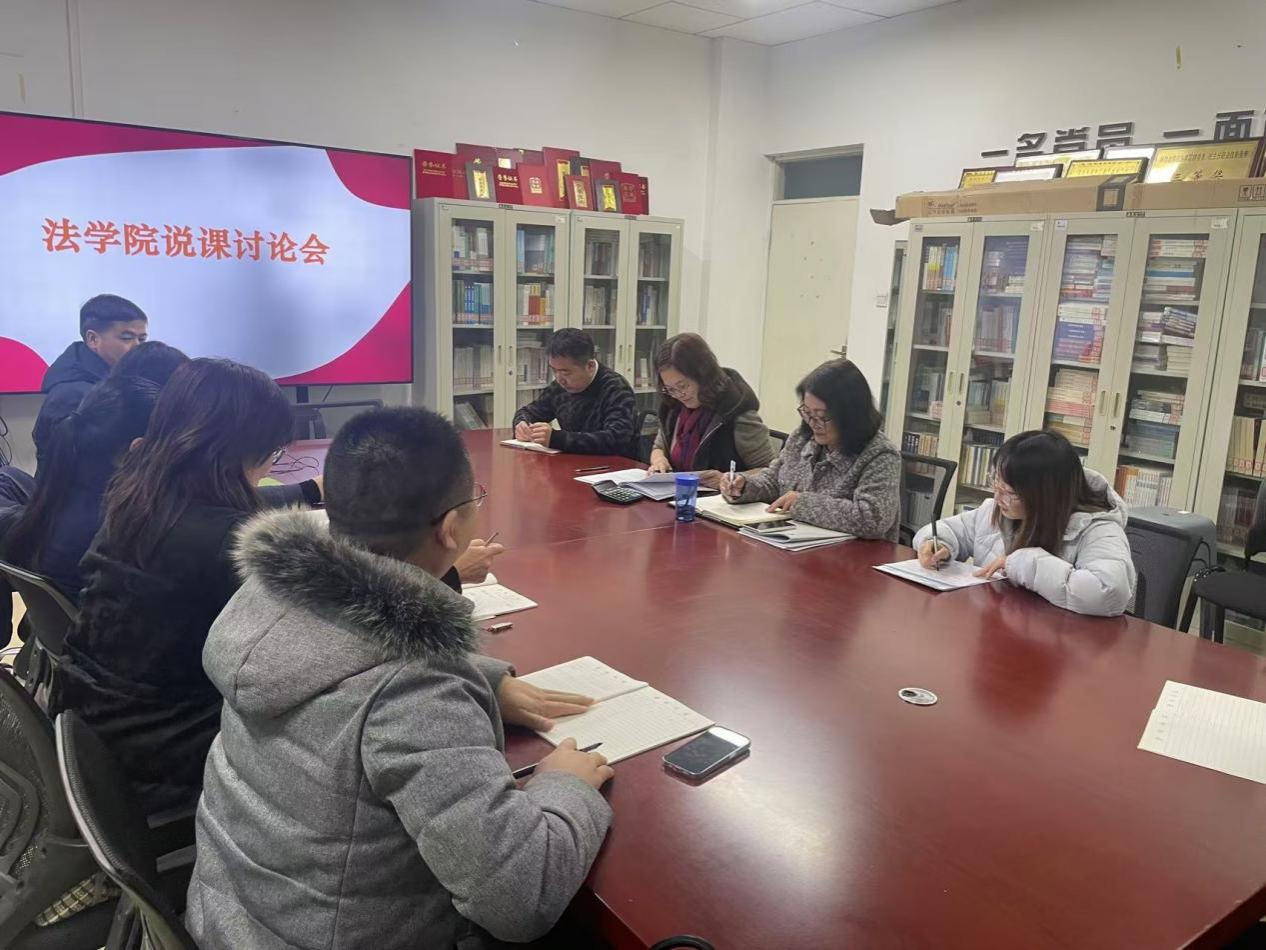 按照学校工作部署,为进一步提升学院整体教学水平,构建“自觉、自省、自律、自查、自纠”的质量文化机制,迎接新一轮审核评估工作及达到硕士点建设要求,12月12日,法学院召开说课讨论会,组织4个教研室开展“说课程”活动。各教研室主任积极动员组织并准备充分,除出差培训教师外,全体授课教师均参与,学院领导班子到现场进行点评。