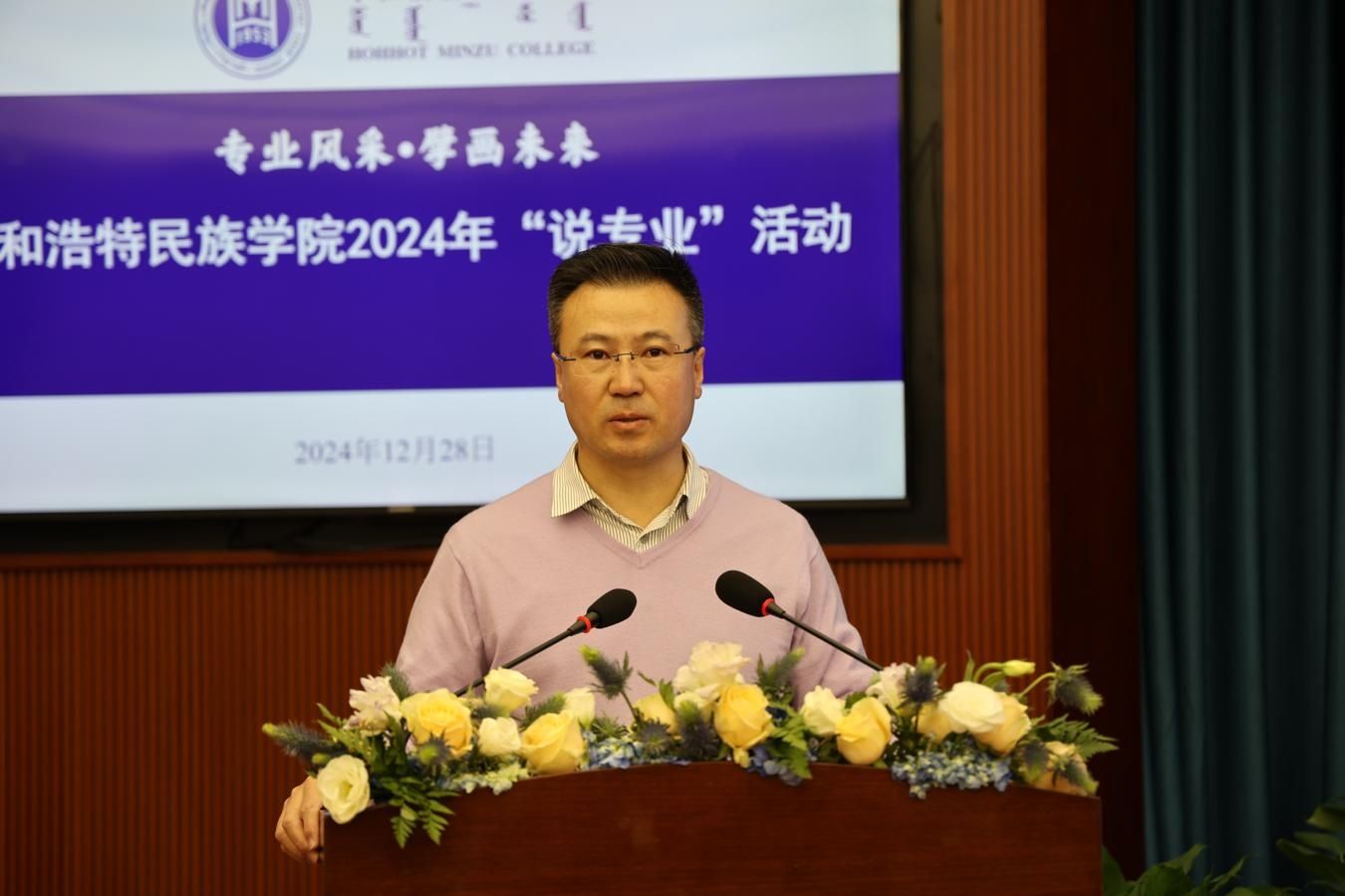 为了迎接师范专业认证和新一轮审核评估工作,深入推进学校本科专业建设,12月28日,在综合楼1211会议室开展了“专业风采 擘画未来——beat365英国官方网站2024年‘说专业’活动”。校党委委员、副校长额尔敦布和主持活动并讲话。