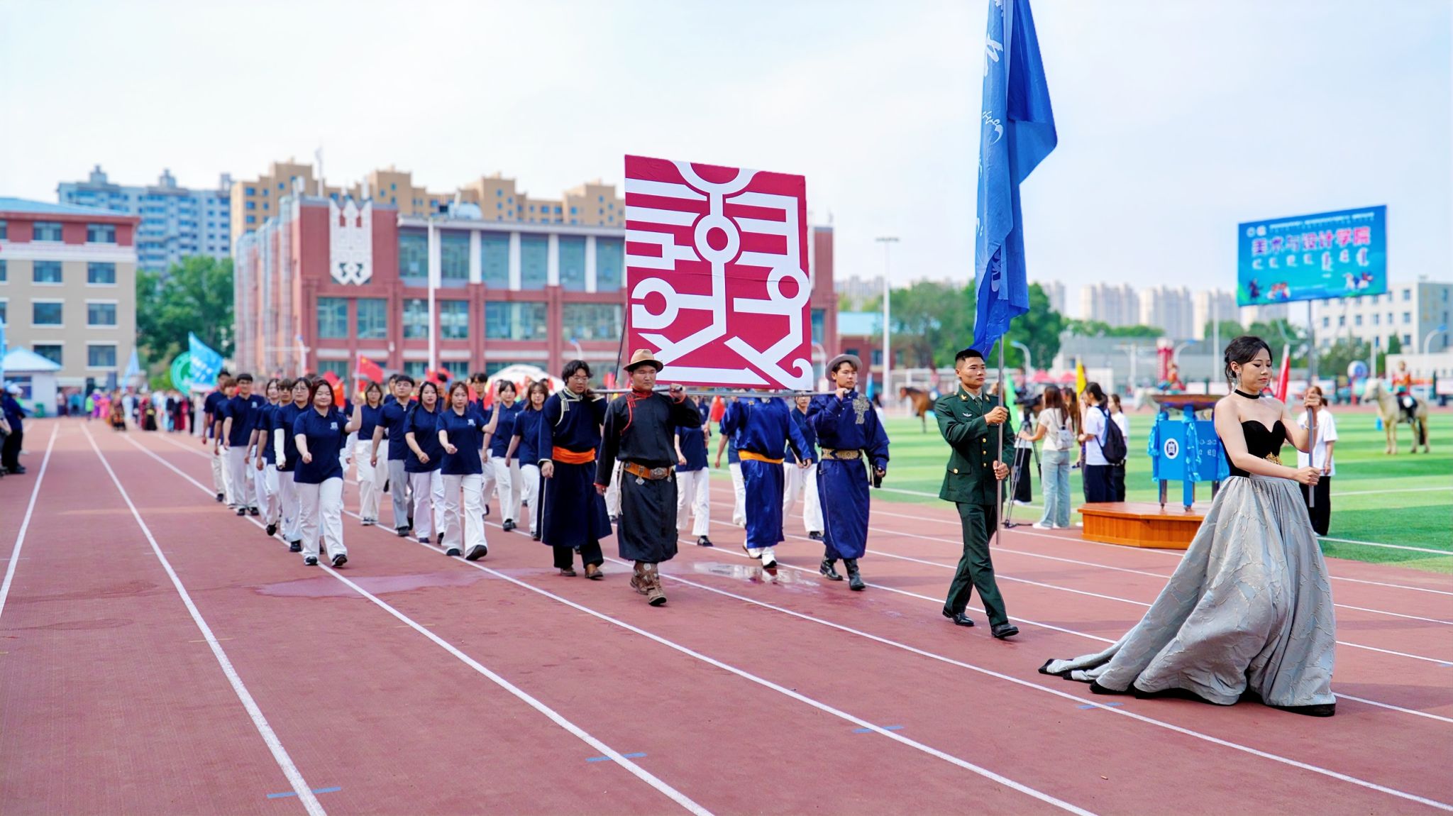 校园夏日,绿意昂扬。5月28日上午,学校举办第十二届校园那达慕文化节暨第六十一届田径运动开幕式。校党委书记刘九万,党委副书记、校长王敏,党委副书记格根哈斯,党委委员、纪委书记、监察专员王冬梅,党委委员、副校长高喜天、刘瑞鸿、额尔敦布和、双虎以及各部门、各学院主要负责人出席开幕式。自治区财政厅、天津工业大学、地方语言文字研究应用中心(内蒙古民族团结杂志社)、内蒙古自治区测绘地理信息中心、内蒙古自治区住房资金中心、呼市公交公司、呼市中医蒙医医院的相关领导和嘉宾也莅临活动现场。开幕式由王冬梅主持。71万+人次观看现场图片直播,内蒙古日报、内蒙古新闻网、草原云等多家自治区主流媒体各类平台宣传发布beat365官网此次活动。