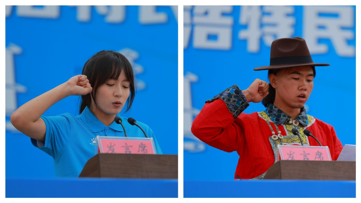裁判员代表姜晓阳同学、运动员代表奈日格勒同学进行了庄严宣誓。