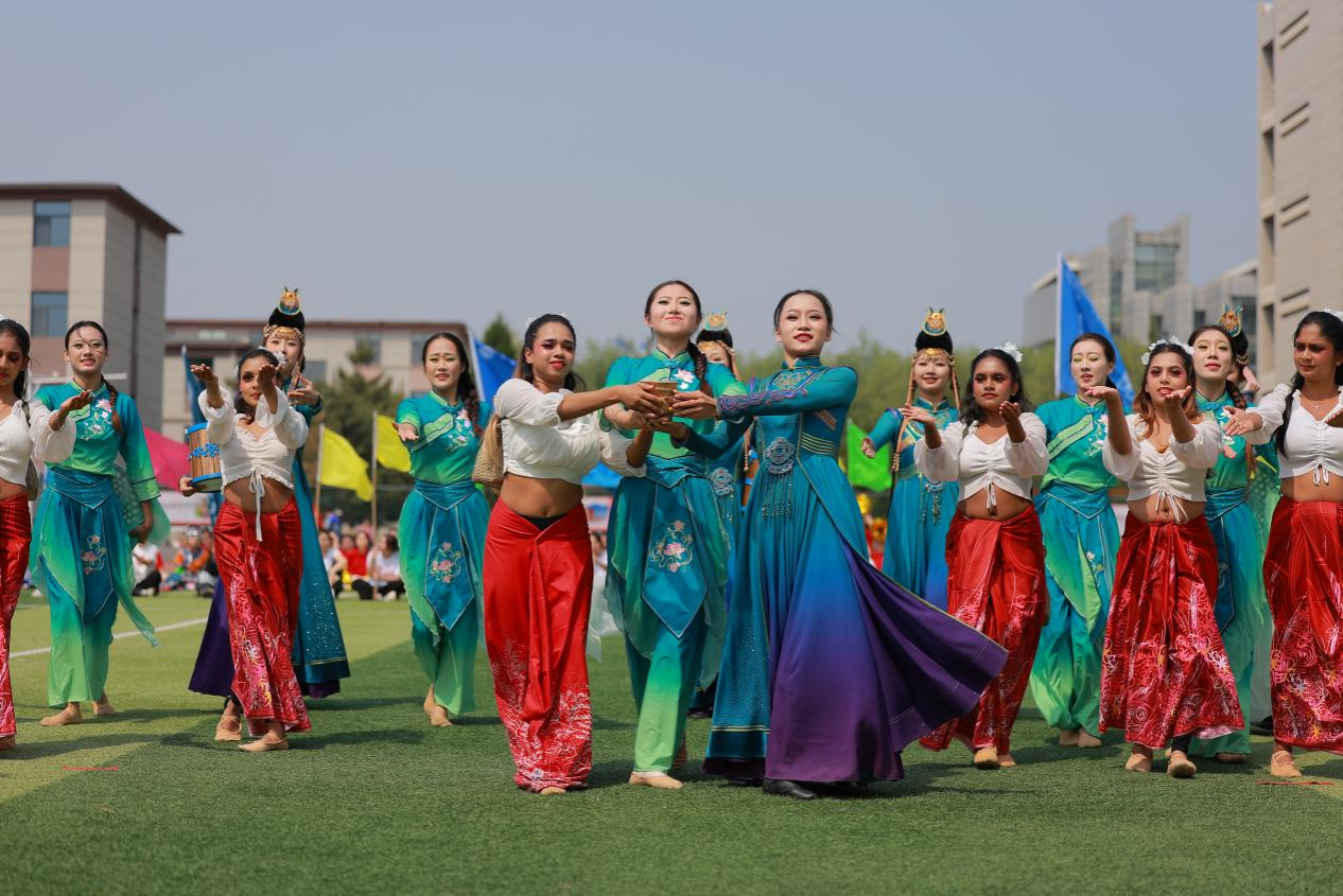 那达慕文化节精彩演出的文艺节目精彩纷呈,为广大师生献上了一场绚丽多彩的民族文化盛宴。演出在活力四射的啦啦操《北疆新韵 青春启航》表演中欢乐开场。长调《盛世太平》悠扬动听,马头琴齐奏《万马奔腾》气势非凡,古筝重奏《赛马》欢快跳跃,教职工舞蹈《安好》活力四射,花样跳绳《十二生肖》花式炫技,展现呼民院师生积极向上的风貌。舞蹈《茶脉共舞 丝路传情》由天津工业大学国际教育学院斯里兰卡籍7名学生与beat365官网学生共同表演,以舞传情、以衣载道,共绘文化交融新画卷。武术《武韵天骄》精彩演绎赢得掌声不断,将表演推向高潮。整场演出在合唱《我爱你中国》的壮美旋律中落下帷幕。