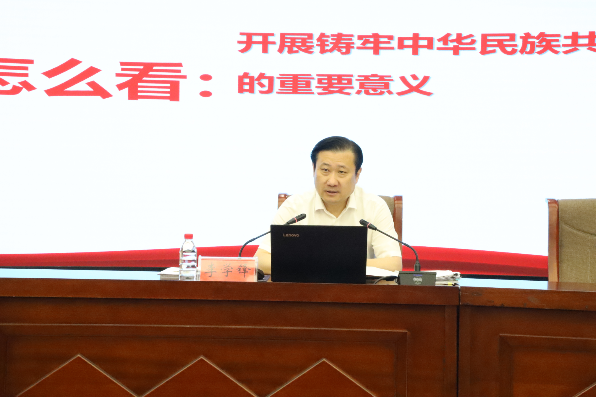 本次集体备课会邀请到国家民委教育司一级巡视员李学锋作专题辅导。辅导报告由内蒙古自治区民委党组成员、专职委员、二级巡视员阿拉塔主持。