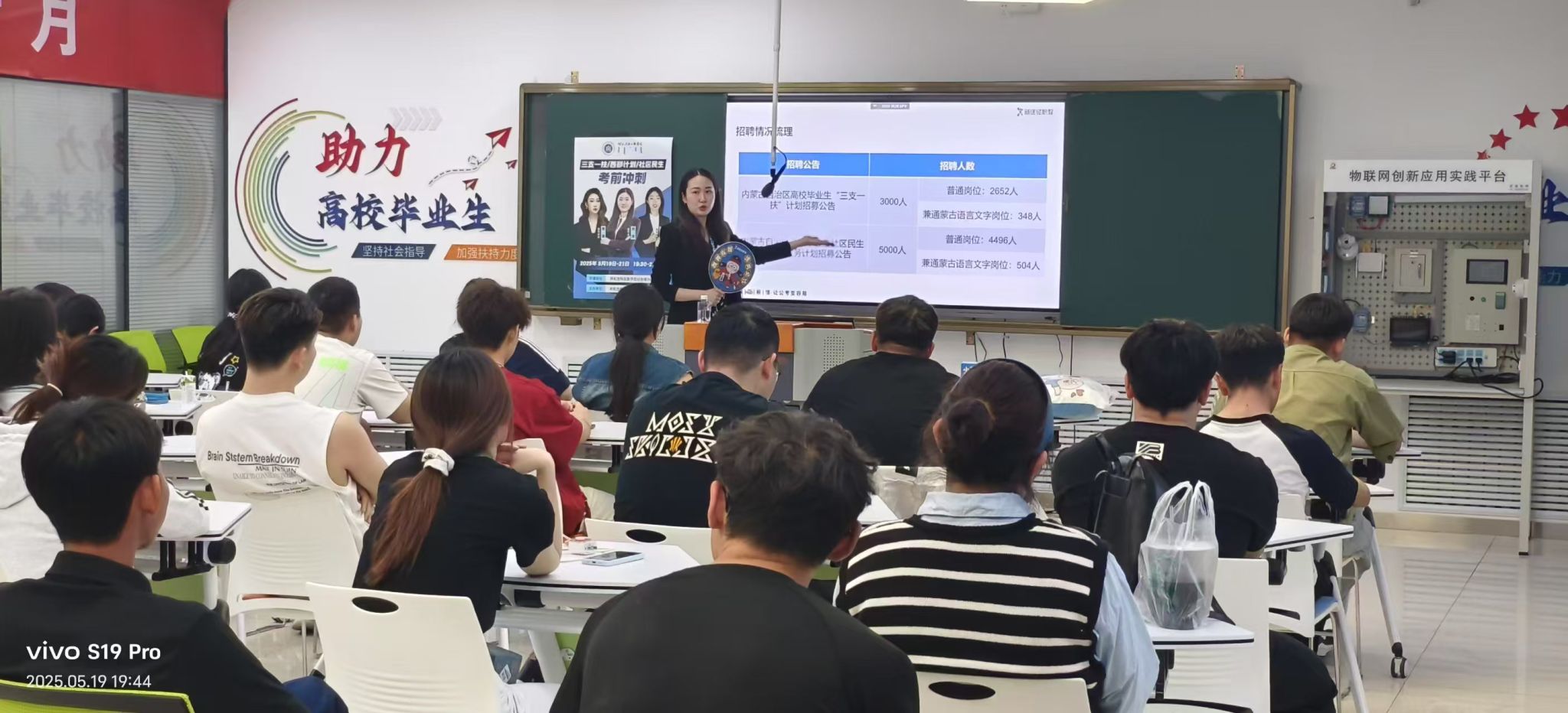 5月19日,招生就业处在创业楼307教室举办“三支一扶”基层服务项目解读讲座,共吸引83名毕业生到场参与。