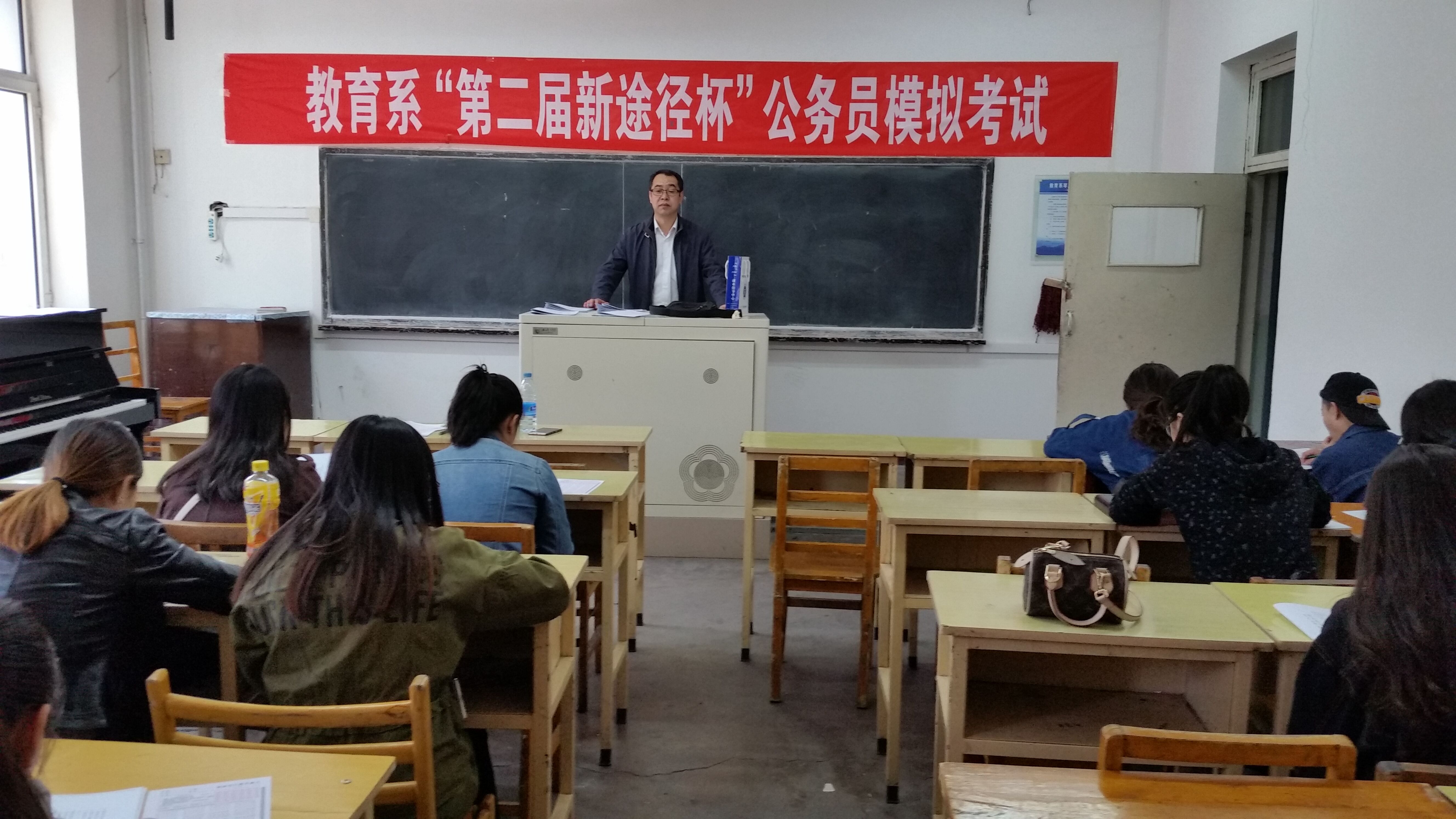 为提高我系毕业生综合就业竞争力及公务员考试、基层考试过关率,新途径教育机构、2016年4月8日下午,教育系就业创业工作委员会携手学校就业指导中心举办了“第二届新途径杯”校园公务员模拟考试。 通过本次模拟考试,让毕业生亲历模拟公务员考试全程,对公务员考试流程有了清晰的认识和了解,积累了公务员考试经验,为以后的公考、基层考试做了准备。(胡宝泉报道 王福清审核)
