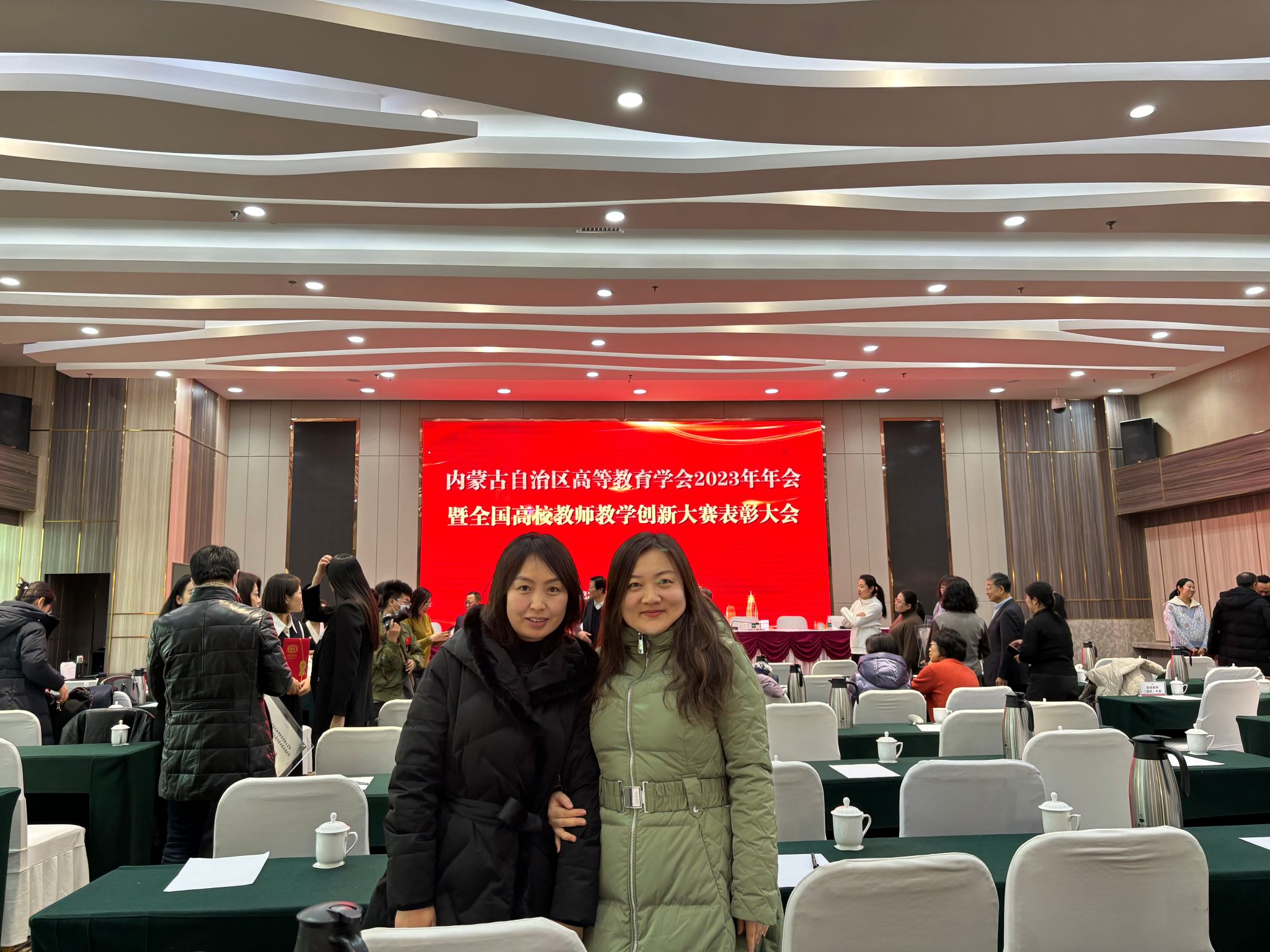 12月17日上午我院教师连娜和乌日罕应邀参加在呼和浩特市宾悦大酒店举办的“内蒙古自治区高等教育学会2023年年会暨全国高校教师教学创新大赛表彰大会”。