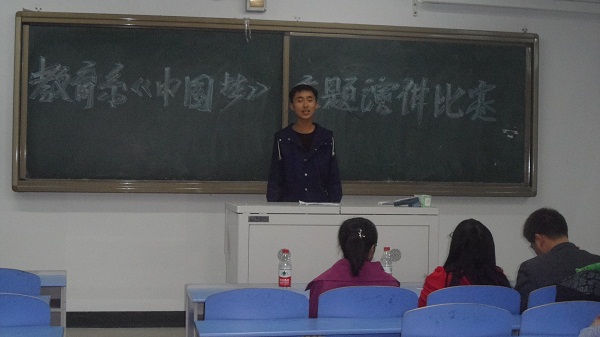教育系团总支于2013年4月1日晚7:00在新教学楼420教室举行了“中国梦”主题演讲比赛,出席这次活动的有蒙古语言文学系程刚老师、马列教研部团总支书记包玉柱老师、我系团总支书记胡宝泉老师、王惠东老师、许晓芳老师及教育系50多名学生。 本次活动的参赛选手共20名,在比赛过程中,选手们的表现非常出色,经过两个多小时的激烈角逐,王静同学、斯琴同学刘时悦同学分别荣获一二三等奖。通过这次活动,不仅让学生对《中国梦》这一主题有了深刻的认识,也让同学们确立了符合自身的人生梦想。