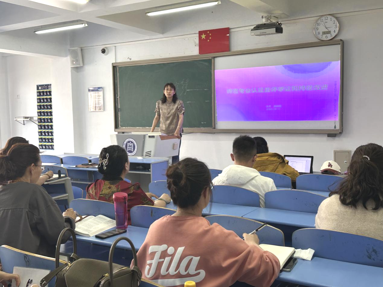 其其格副院长指出了专业自评在师范类专业认证工作中的重要性,自评工作是否到位、自评报告质量高低,直接影响到认证各工作环节的进展及认证结论的可靠性,并强调学院将始终坚持“突出学生发展、强化教学质量、实现持续发展”的认证理念,把握“反向设计,正向施工”的基本思路,保证材料逻辑严谨,充分反映学院特色和亮点,以达到认证标准。