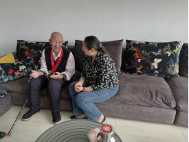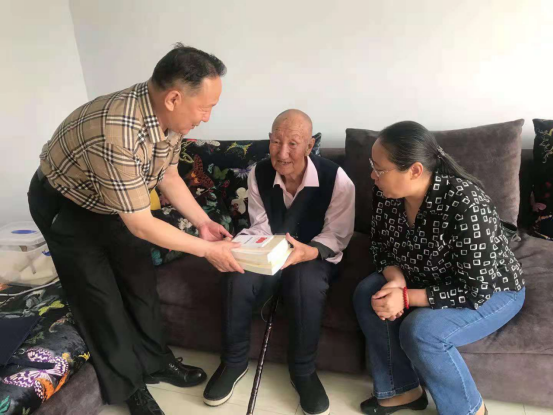 送书上门2021年6月11日,学校纪检委王冬梅书记为恩和吉日嘎拉老师和颁发在党五十年荣誉勋章。恩和吉日嘎拉老师非常高兴,虽然眼睛看不见了,但是摸到勋章后激动的连连说感谢党的恩情,感谢学校多年的关心关怀,表示一定要听党话、跟党走,不忘初心、牢记使命,做一名合格的党员。